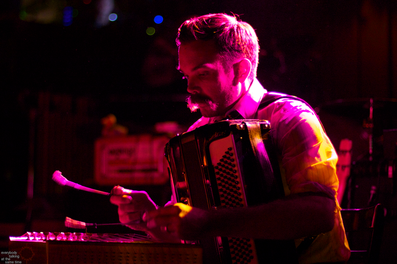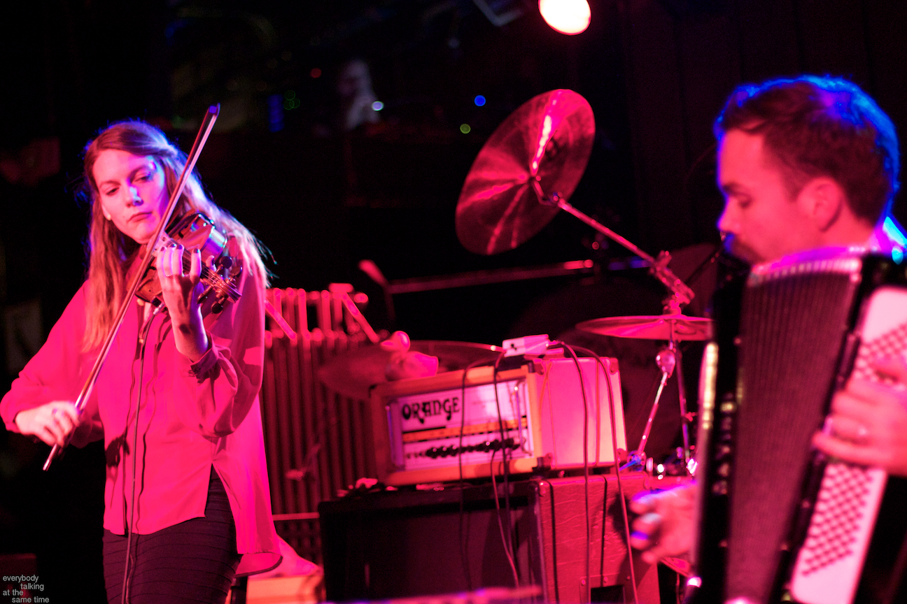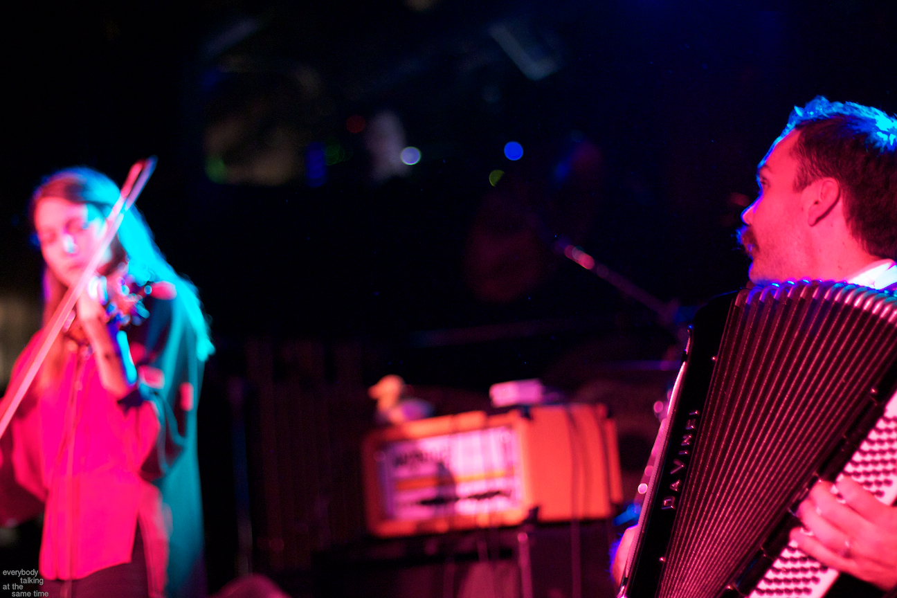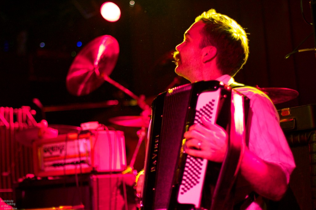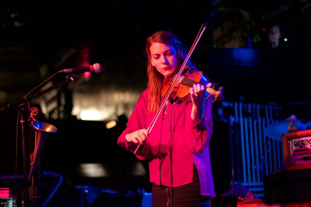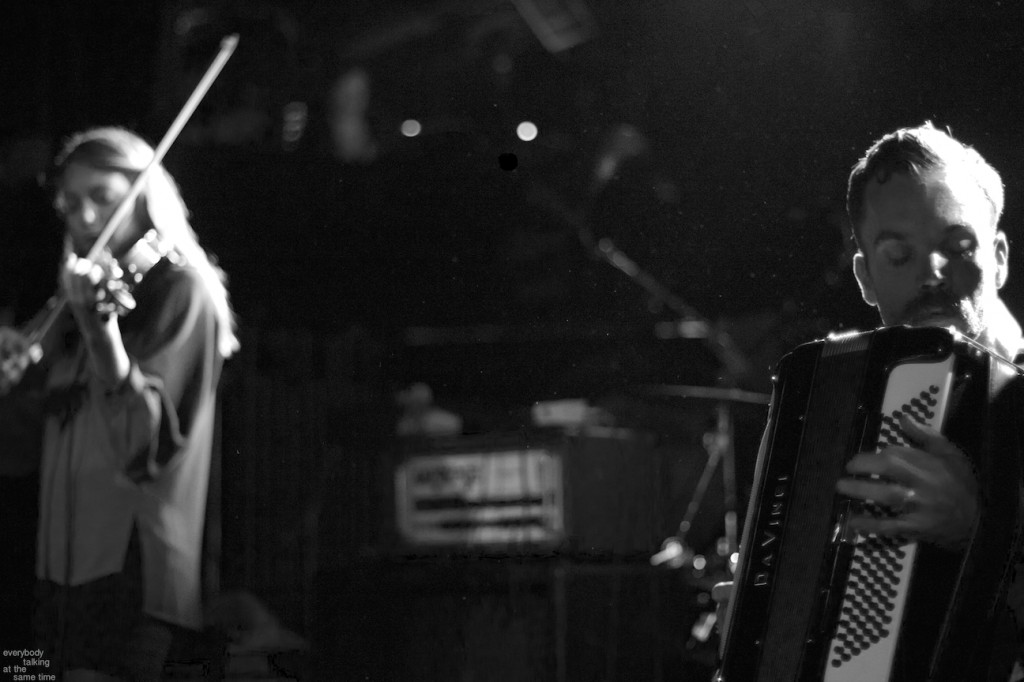 Openers A Hawk and a Hacksaw provided a lovely opening set which ran contrary but strangely complementary to the overwhelming bombast of their hosts. Members Jeremy Barnes and Heather Trost employed violin, accordion and dulcimer in their Balkan and Eastern European-indebted and largely instrumental songs. The duo’s proficiency on traditional and atypical (for the Paradise stage at least) instruments was impressive, and their songs were laden with infectious rhythms and melodies. They performed a longer-than-usual 45-minute opening set, and it didn’t feel half that length. Perhaps a venture into the quaint and charming was precisely what we needed before a marathon Swans performance.