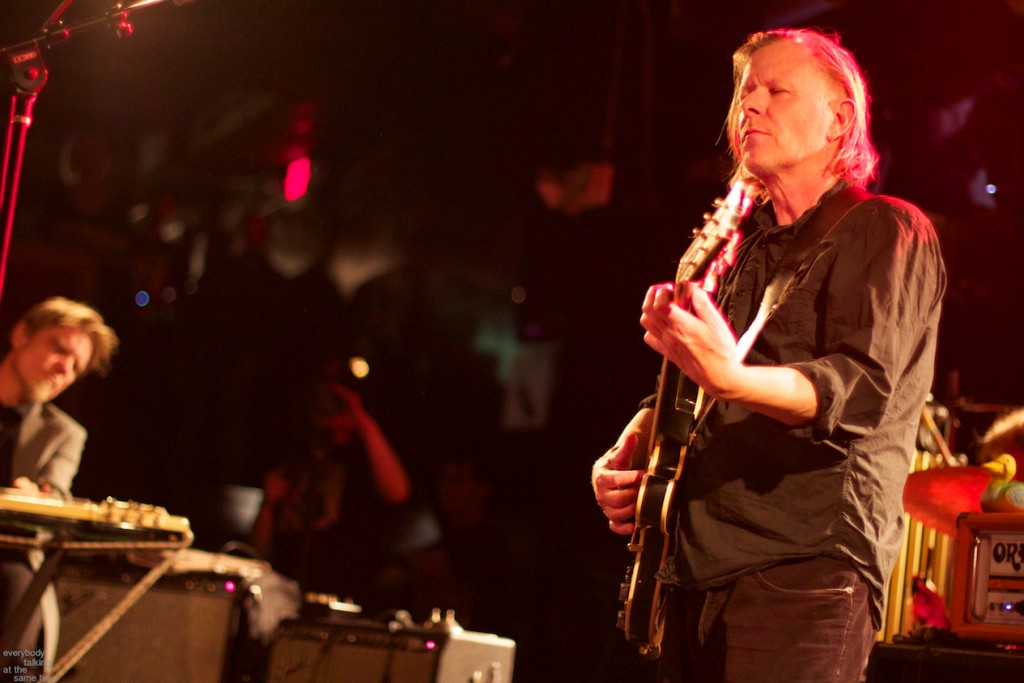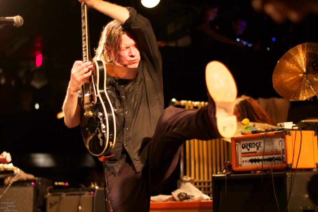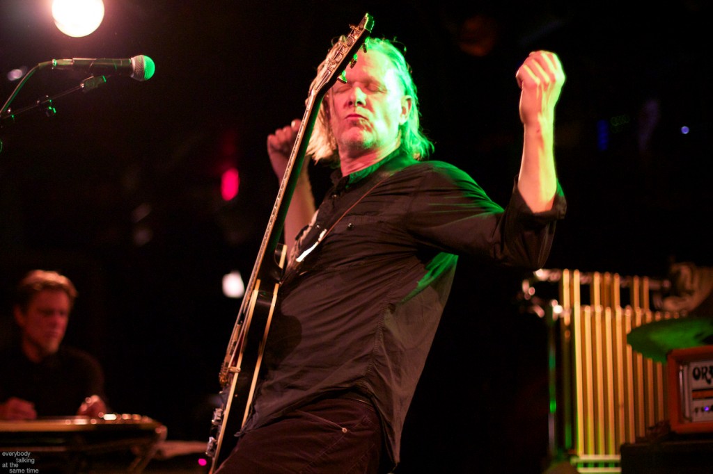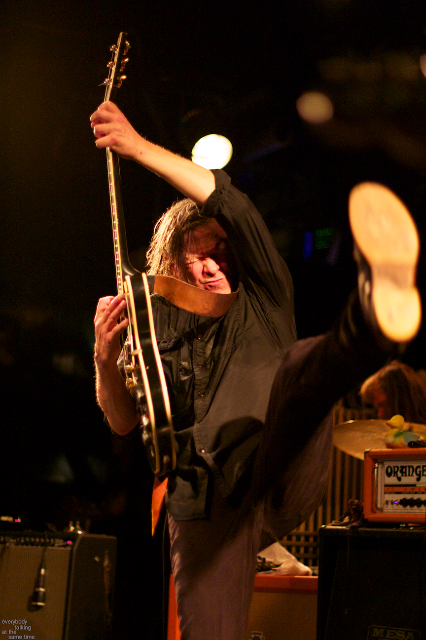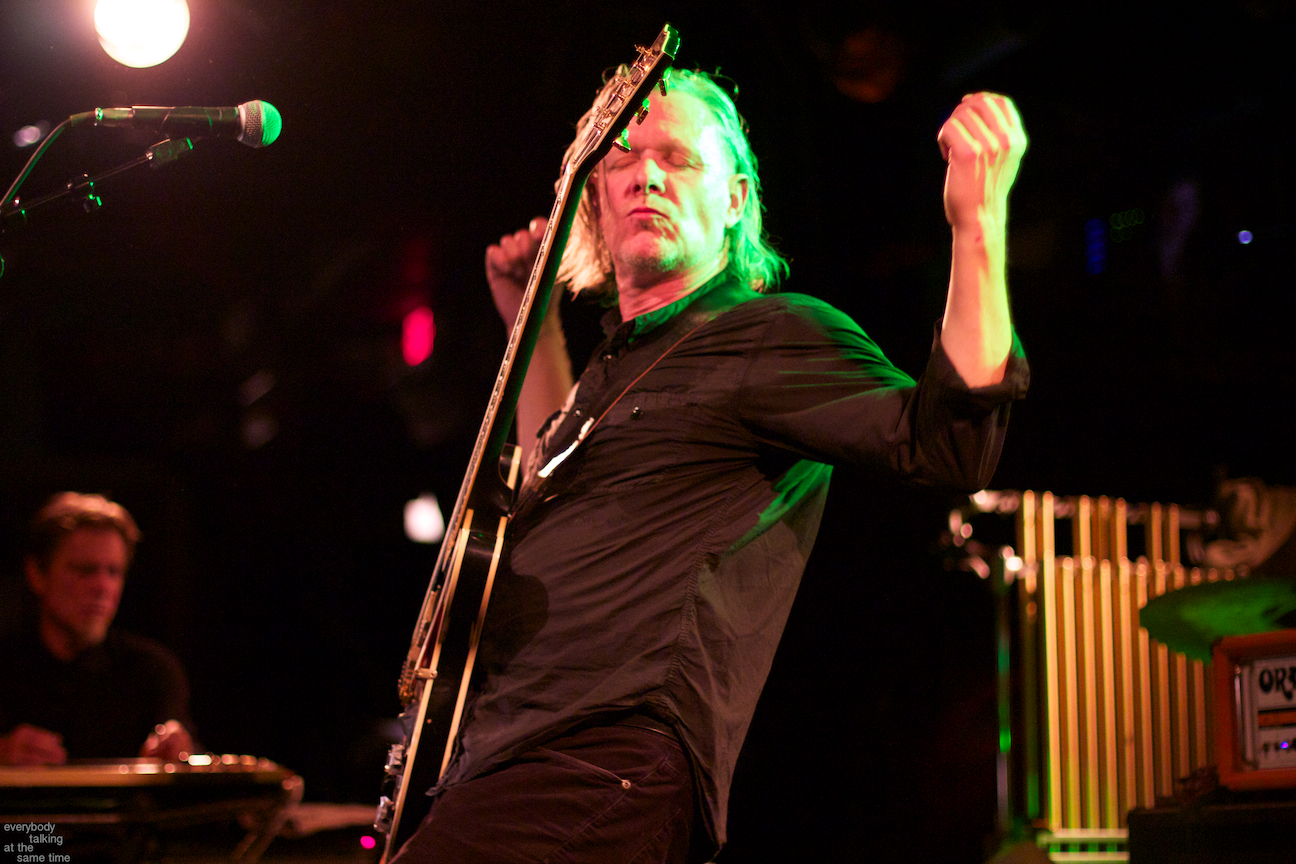 If there’s one aspect of the Swans myth that’s indisputable, it’s that yes, they do play some very extremely loud shows. Last year’s gig at the Royale was a few notches above polite, but it was nothing compared to the Paradise on Thursday. In a small room like that, Swans were six men conjuring the most sound I’ve ever heard a group of humans produce. The roaring in my ears didn’t quiet down for a day and a half. And I was wearing earplugs (mostly). The massive volume levels reached at the very peak of these songs are not about punishing or torturing an audience though. Losing yourself in the sheer, cathartic physicality of all that sound is at the core of what Swans have always been about. In spite of a reputation for gloom and doom, Gira has always maintained that joy is the ultimate goal in what he does. For himself, his band and his audience, it’s a goal he surely achieved Thursday night.
