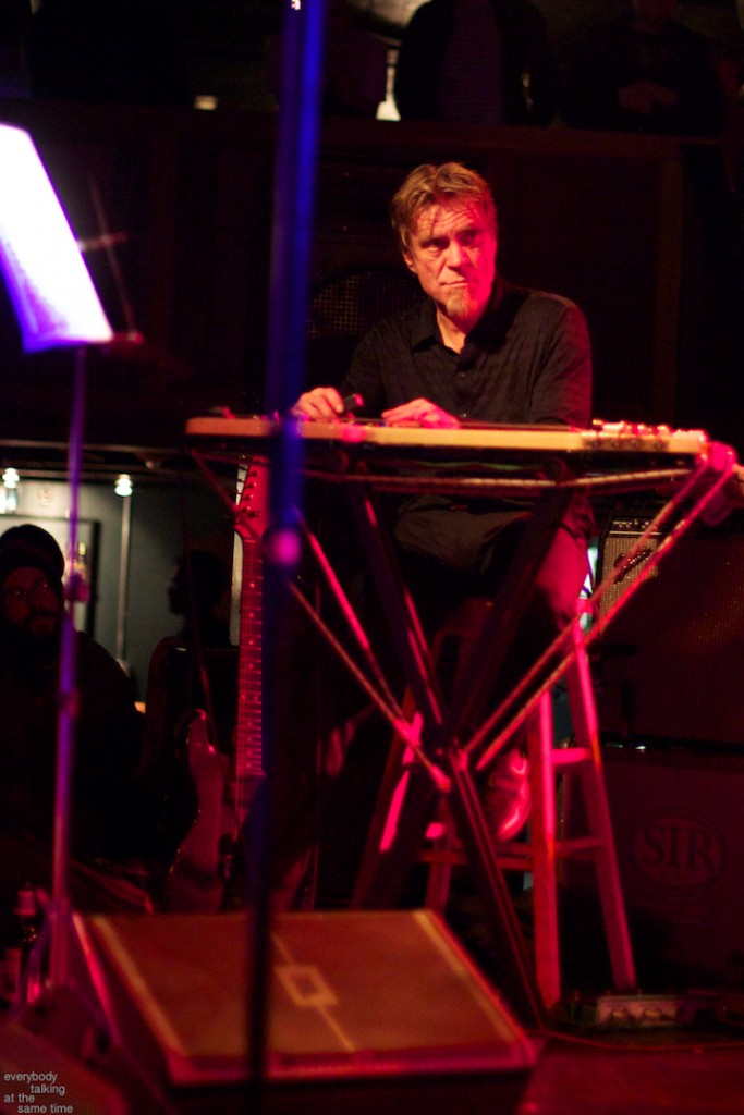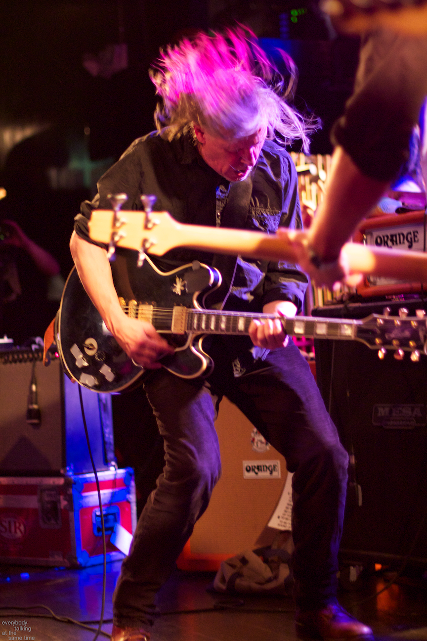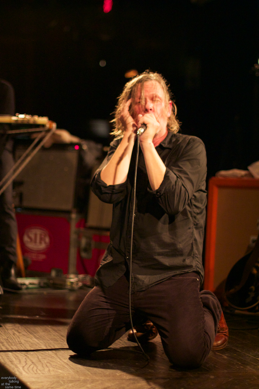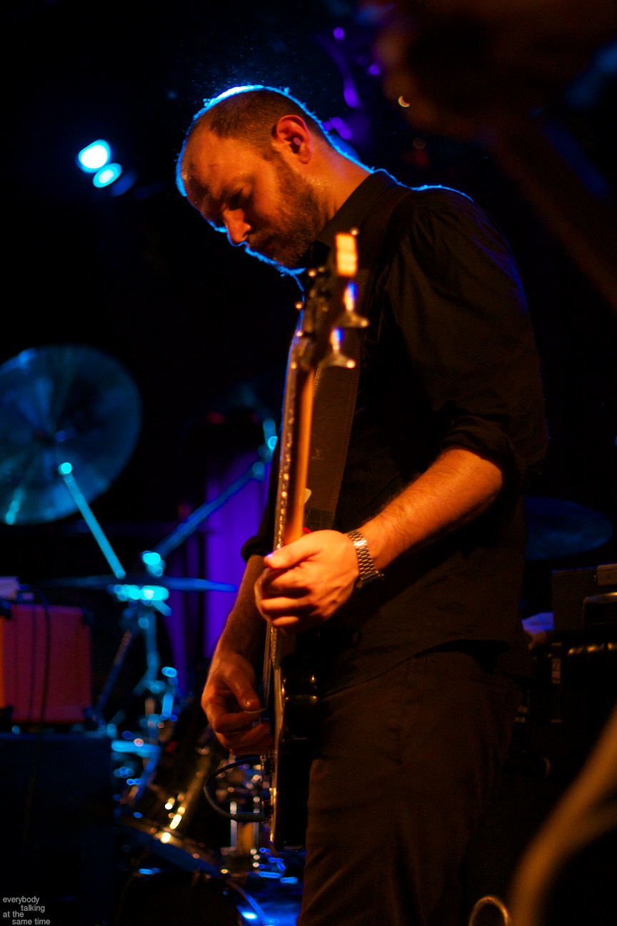 If there’s one aspect of the Swans myth that’s indisputable, it’s that yes, they do play some very extremely loud shows. Last year’s gig at the Royale was a few notches above polite, but it was nothing compared to the Paradise on Thursday. In a small room like that, Swans were six men conjuring the most sound I’ve ever heard a group of humans produce. The roaring in my ears didn’t quiet down for a day and a half. And I was wearing earplugs (mostly). The massive volume levels reached at the very peak of these songs are not about punishing or torturing an audience though. Losing yourself in the sheer, cathartic physicality of all that sound is at the core of what Swans have always been about. In spite of a reputation for gloom and doom, Gira has always maintained that joy is the ultimate goal in what he does. For himself, his band and his audience, it’s a goal he surely achieved Thursday night.