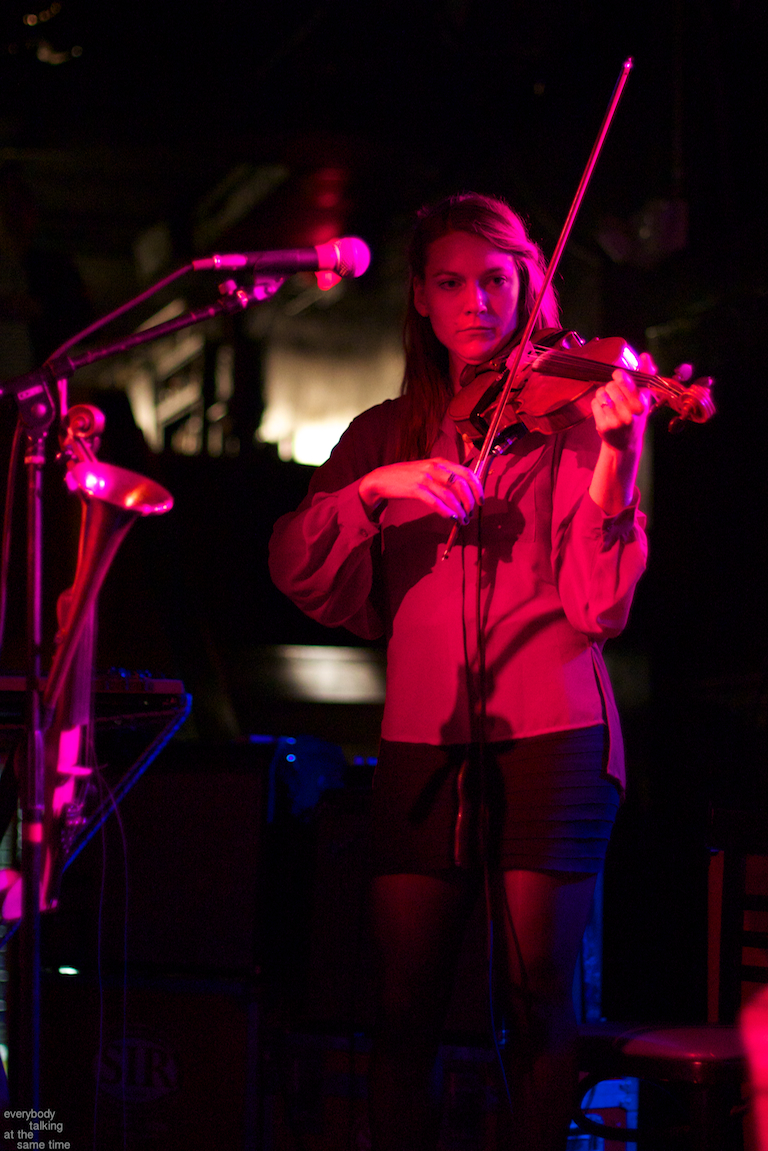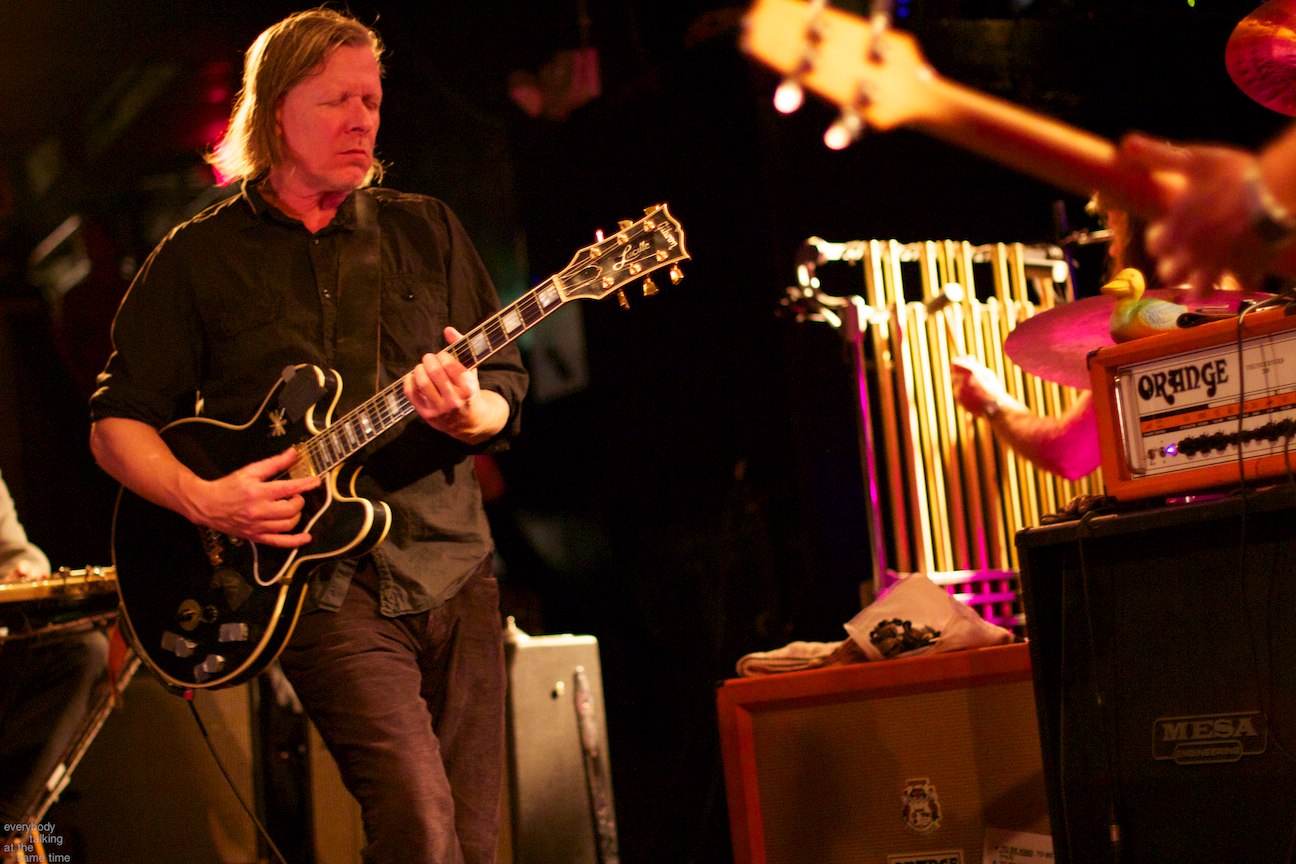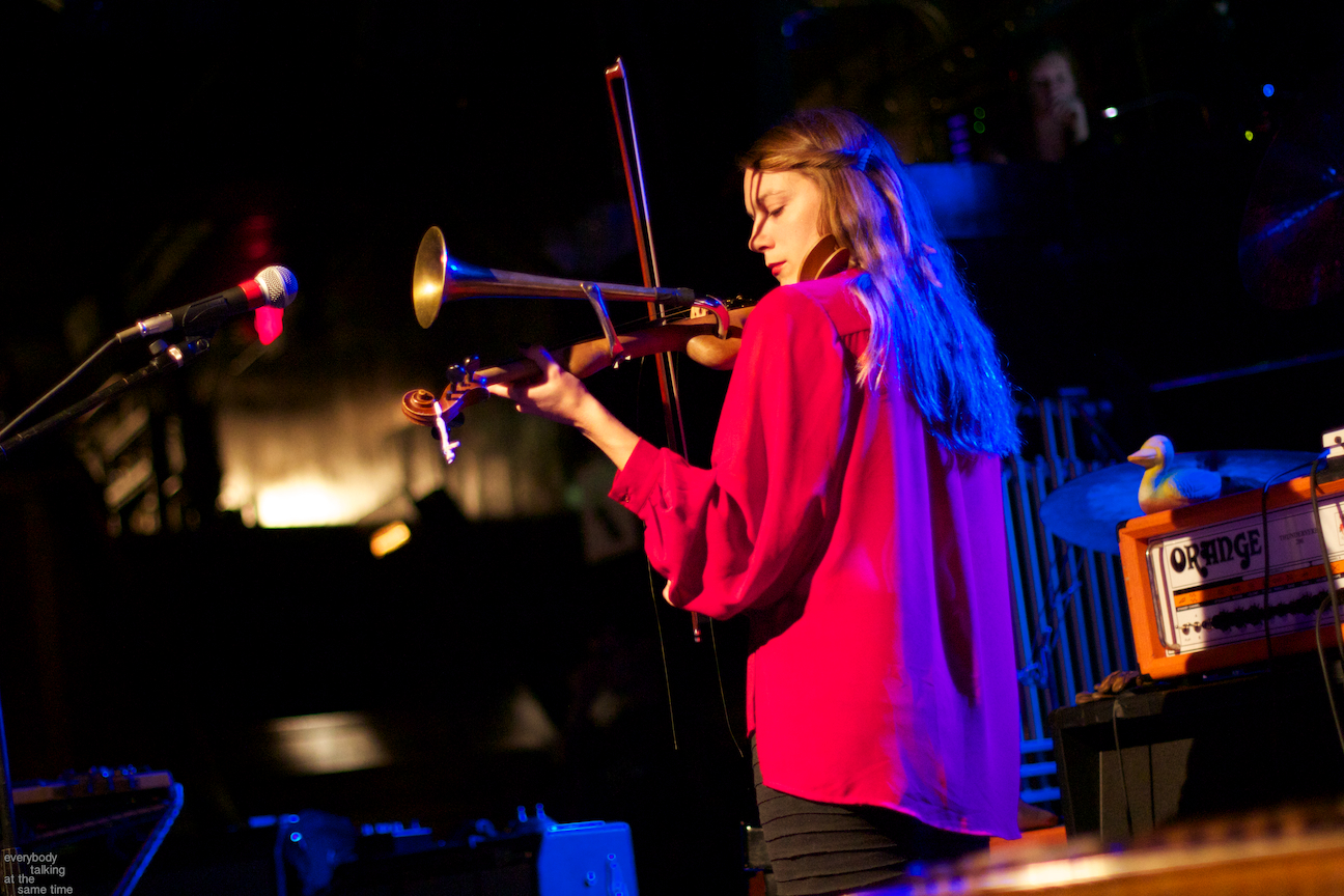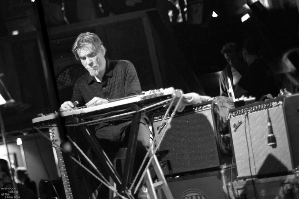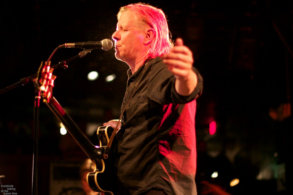 If there’s one aspect of the Swans myth that’s indisputable, it’s that yes, they do play some very extremely loud shows. Last year’s gig at the Royale was a few notches above polite, but it was nothing compared to the Paradise on Thursday. In a small room like that, Swans were six men conjuring the most sound I’ve ever heard a group of humans produce. The roaring in my ears didn’t quiet down for a day and a half. And I was wearing earplugs (mostly). The massive volume levels reached at the very peak of these songs are not about punishing or torturing an audience though. Losing yourself in the sheer, cathartic physicality of all that sound is at the core of what Swans have always been about. In spite of a reputation for gloom and doom, Gira has always maintained that joy is the ultimate goal in what he does. For himself, his band and his audience, it’s a goal he surely achieved Thursday night.