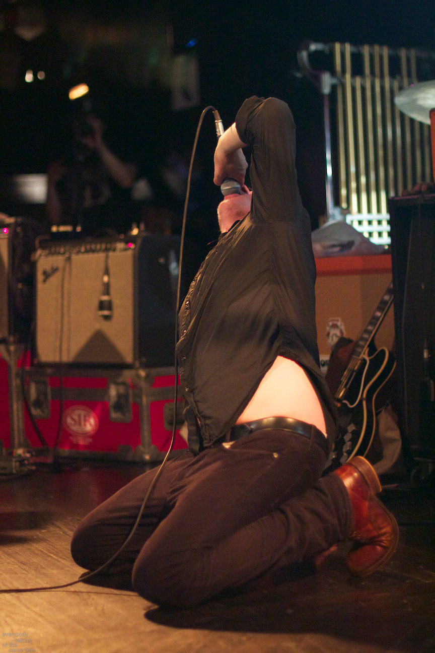 Set-closer “The Apostate” ended with Gira on his knees in the center of the stage, utterly drenched in sweat and howling “WE ARE BLESSED” at the top of his lungs. And with that, nearly 150 minutes of the most viscerally intense live performance I’ve ever witnessed drew to a close. Perhaps the relatively tiny confines of the Paradise had something to do with it, but this set blew last year’s already impressive Royale show out of the water. The band was tighter, louder, scarier and gave themselves over to their music in a way few of their contemporaries do. Gira’s goal is transcendence through sound, and that’s precisely what Swans pull off. When the show ended, I stumbled out onto the street with my ears ringing and my head feeling rearranged, euphoric and firmly convinced this was one of the greatest shows I’d ever seen.