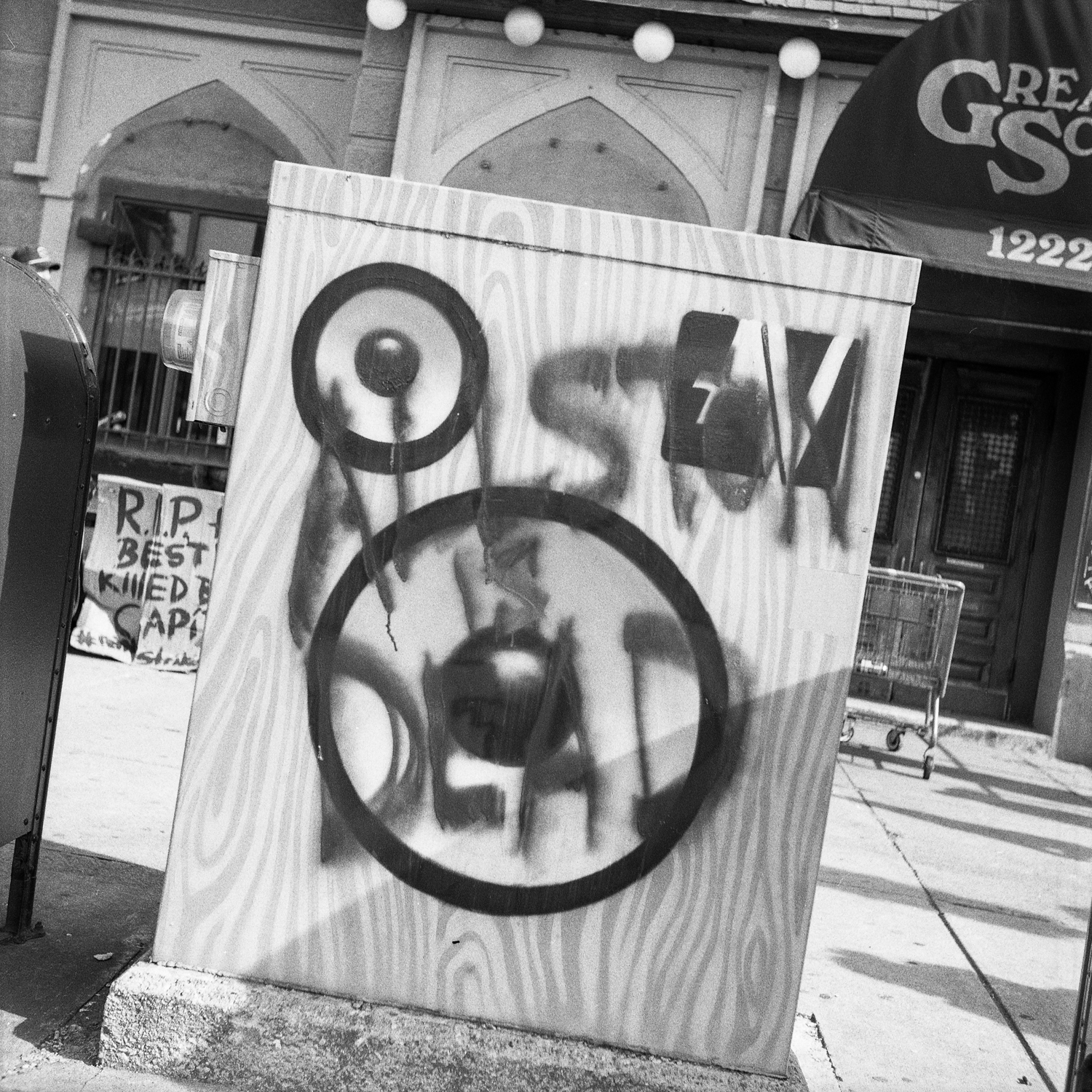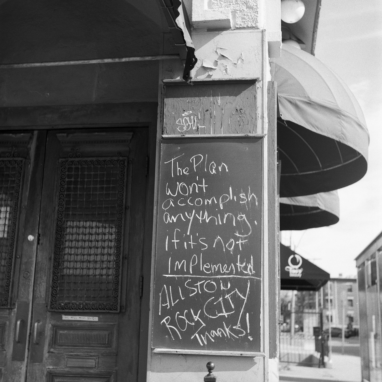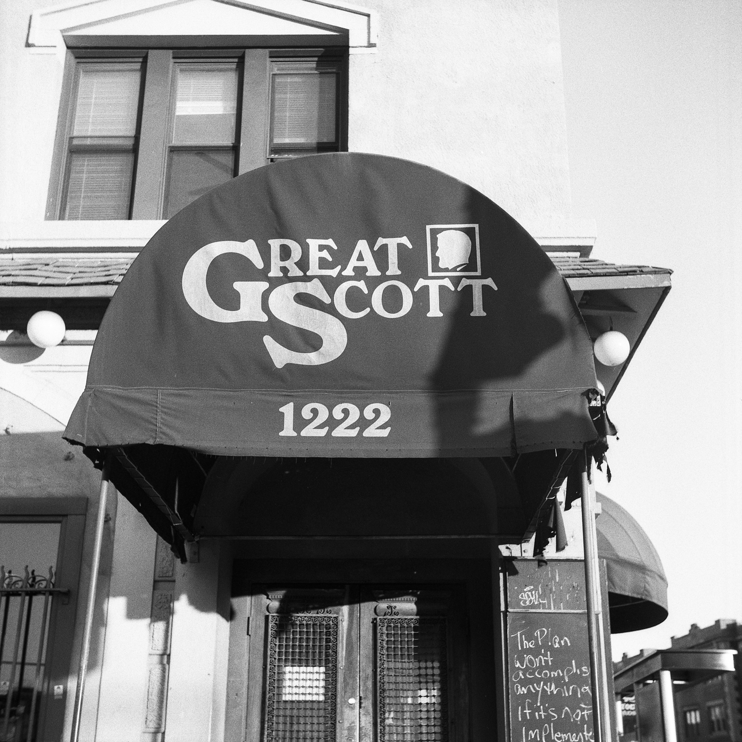 I tried to do something similar in the roll of medium format dedicated to Great Scott you see here, partly documenting the memorials left outside and partly just taking in the space in a way I hadn’t before. It’s not too often that one takes the time to look at a venue the way a few folks did on the weekend of Great Scott’s officially-announced demise, gathering at a reasonable social distance on the Comm. Ave. sidewalk to drink a beer and publicly lament, or like I did a week later, quietly studying its exterior in late afternoon sunlight.