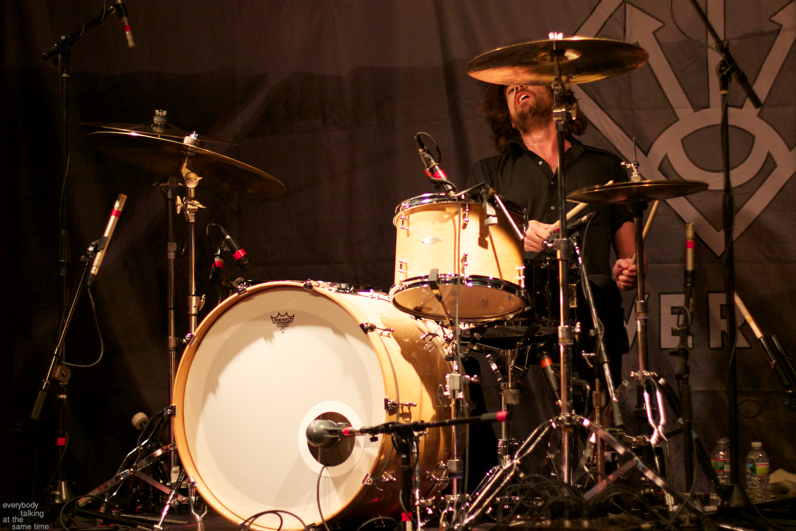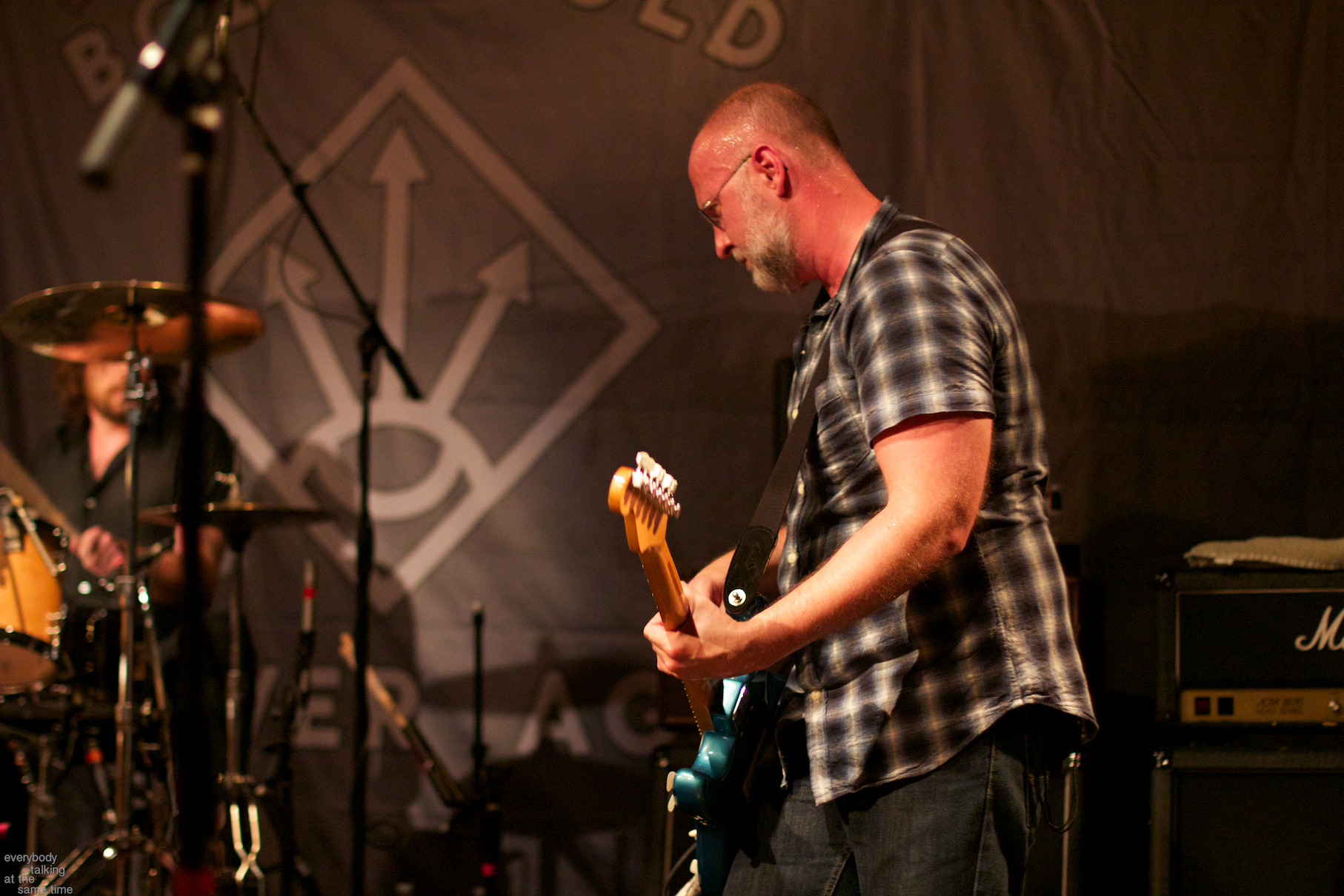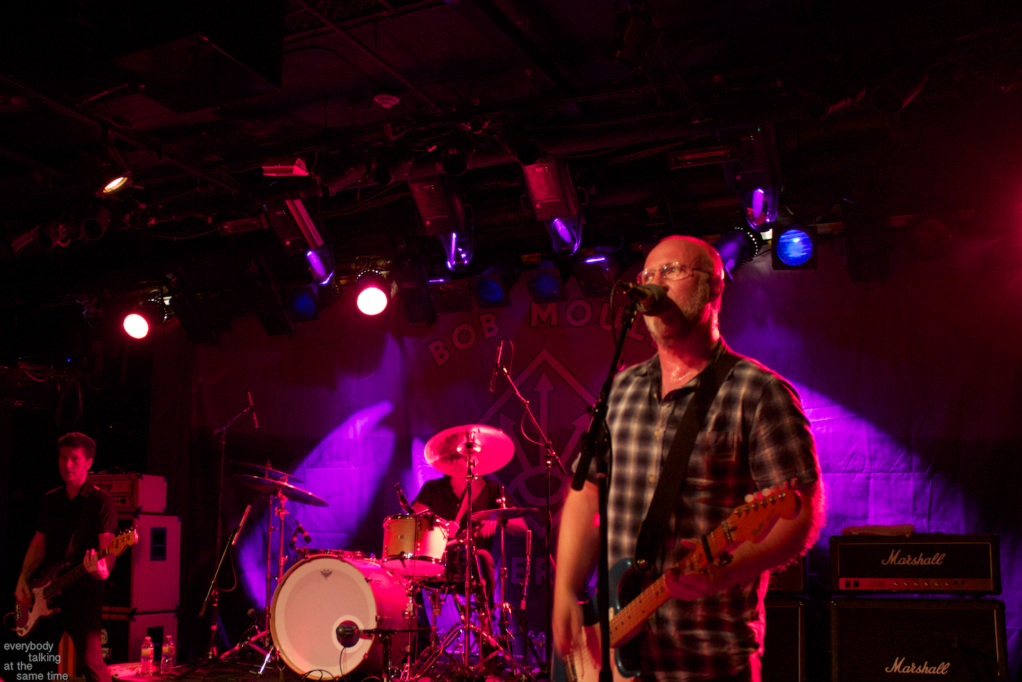 The newly assembled backing band consists of bassist Jason Narducy of Telekinesis and drummer Jon Wurster of Superchunk, The Mountain Goats and Twitter. If Wurster’s near-constant smile and Narducy’s Pollardesque high-kicks were anything to go by, the band is having an absolute blast doing these shows. Even Mould cracked a smile once the all-business “Copper Blue” half of the set was finished. The accompanying duo more than adequately fill the rather large shoes of collaborators in previous bands. Mould’s vocals still have an effective range between aggressive and tuneful, and his guitar work is force-of-nature powerful; a thick assault of distortion, riffs and power chords that could sustain the songs all by itself. The rhythm section fills them out nicely though, and the trio sounds tight and precise.