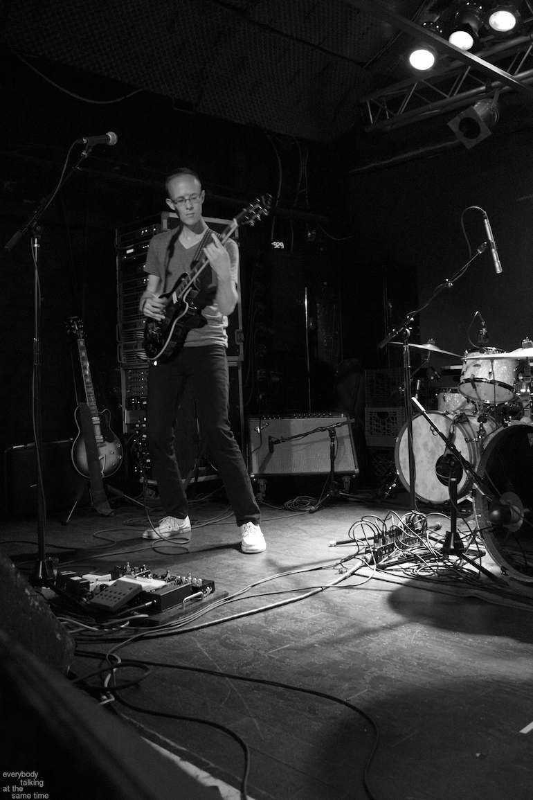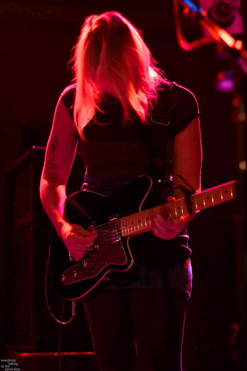 Elements as disparate as jazz, soul, blues and math-rock crept their way into the band’s sound. The percussion took constant unexpected turns, never sticking to a single rhythm for long before adding or subtracting some twist or flourish. The rhythms stopped, started and changed time in ways you never quite saw coming. Guitarist Ryan Seaton doubled as a bassist with his low strings while his bandmates interwove melodies and textural guitar sounds. Sara Lucas’ alternately forceful and haunting vocals floated above the songs, always arresting and sincere. Wye Oak’s Jenn Wasner joined the band for backup vocals on one song, pleasantly blending the two distinctly different but equally stunning female vocal styles which anchor both bands.