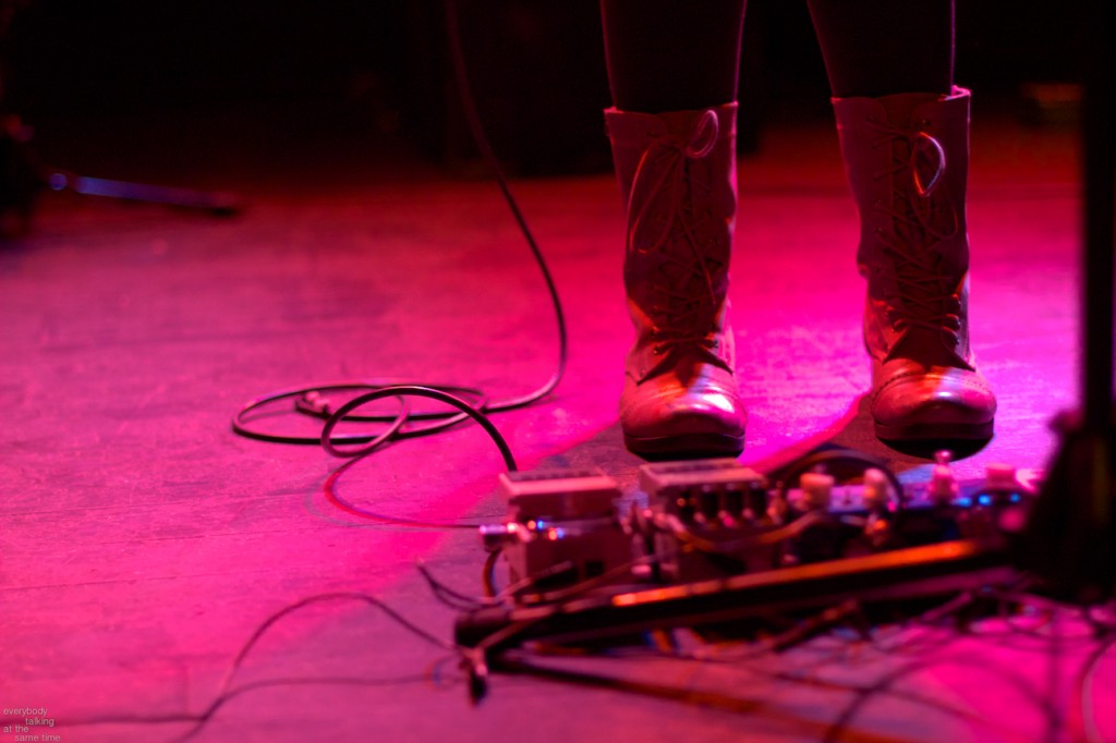 On songs old and new, Wasner and drummer/keyboardist/bassist Andy Stack produced a whole lot more sound than what might seem possible from only two people. Their live sound is so full and lush that one could easily mistake them for a three or four person band if they weren’t watching the duo work. Stack drums with one hand and uses the other for keyboard melodies and pedal manipulation while Wasner’s guitar leaps from restrained finger-picking to massive sheets of distortion and back again. Her playing melds tender aspects of country and folk with walls of shoegaze noise, and her commanding voice pierces the maelstrom with quietly devastating lyrics. Wye Oak conjure up a rather impressive storm – Wasner is two guitarists, a frontwoman and a killer lyricist rolled into one, and Stack is an impressive multi-instrumentalist who comprises a rhythm section unto himself.