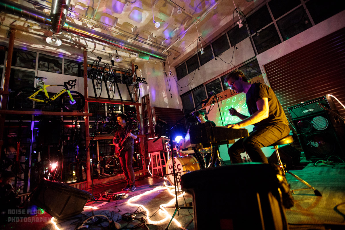 Long-running experimental rockers Oneida played a Boston Hassle-presented gig at Comm. Ave.’s big bike shop.