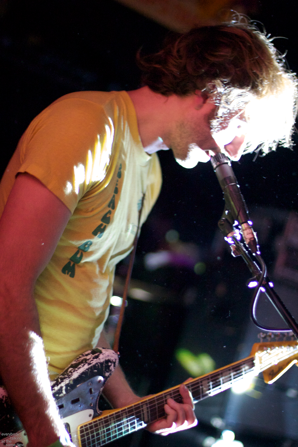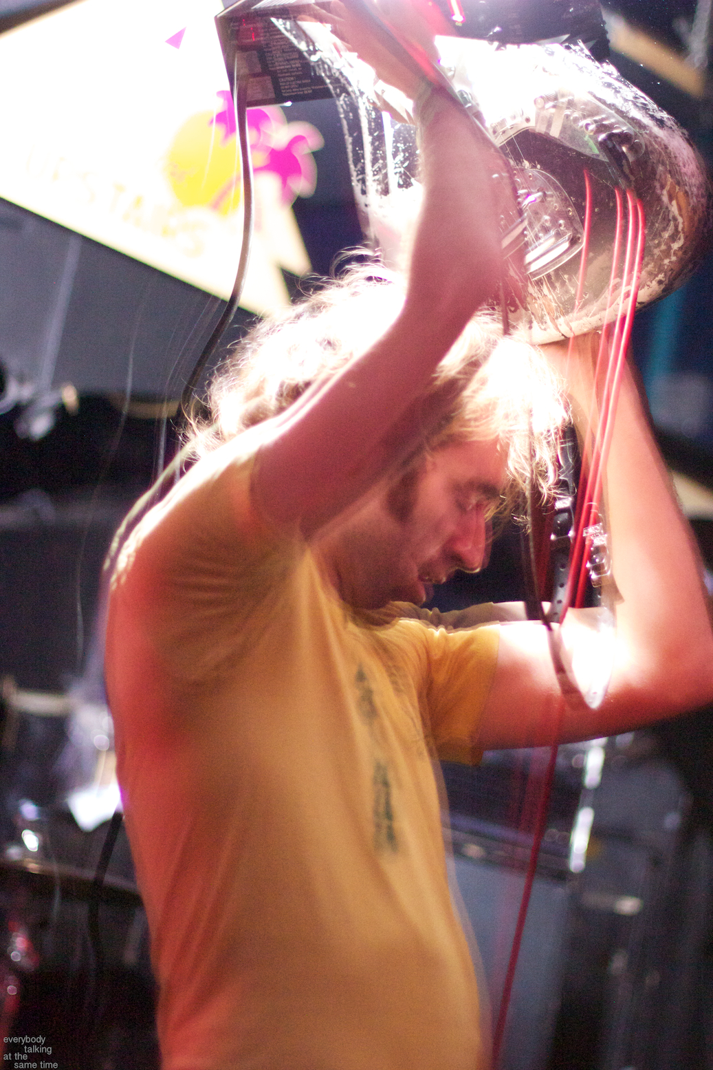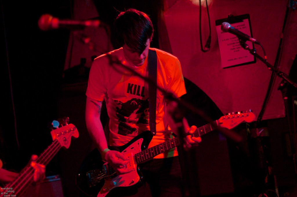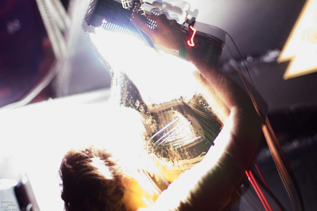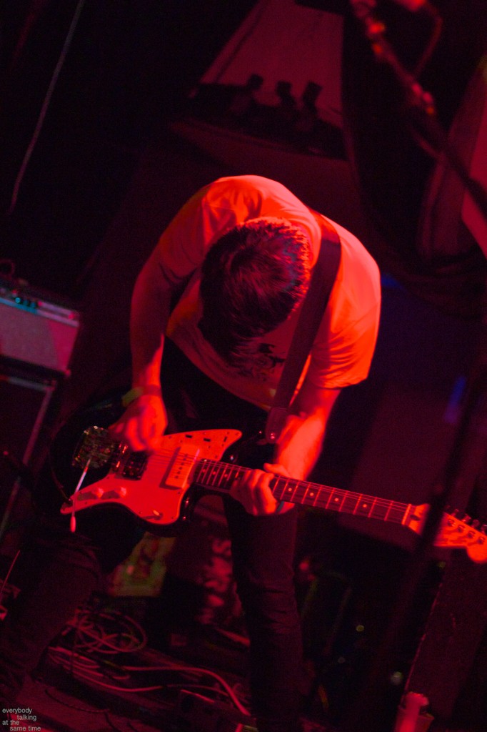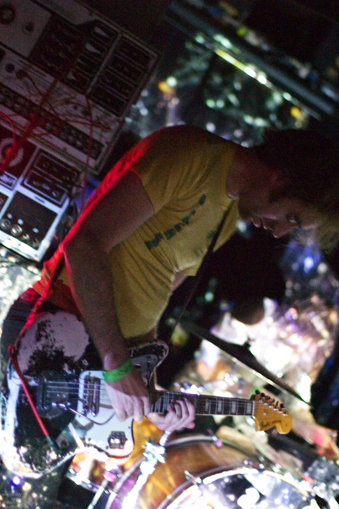 Local trio Young Adults opened up the night with a set of noisy and earnest songs. With a sound that was equal parts shoegaze roar and punk intensity, the band tore into a 40 minute set with concentrated fury. It was an impressive showing from a young band worth keeping an eye on. Philadelphia’s Bleeding Rainbow followed, delivering a varied set that alternated between spacey pop songs and frantic dual-guitar noise freakouts with ease. The band also earns a commendation for following through on a good old-fashioned equipment trashing, which left shards of Stratocaster neck strewn about the stage at the close of their set.