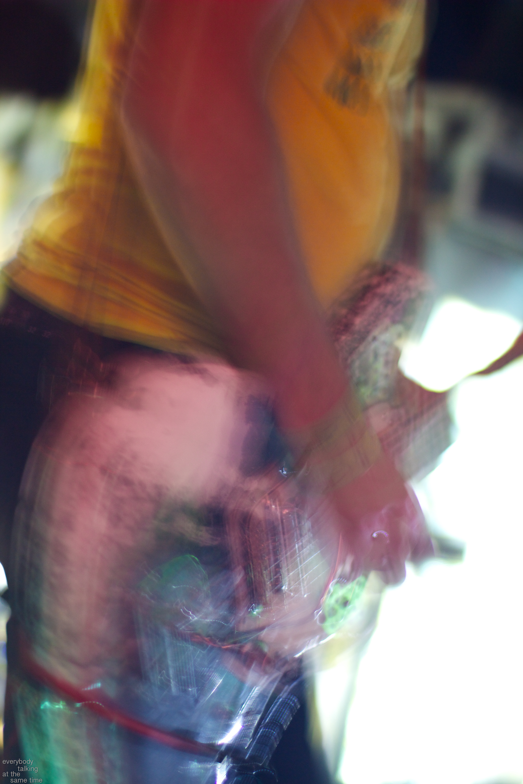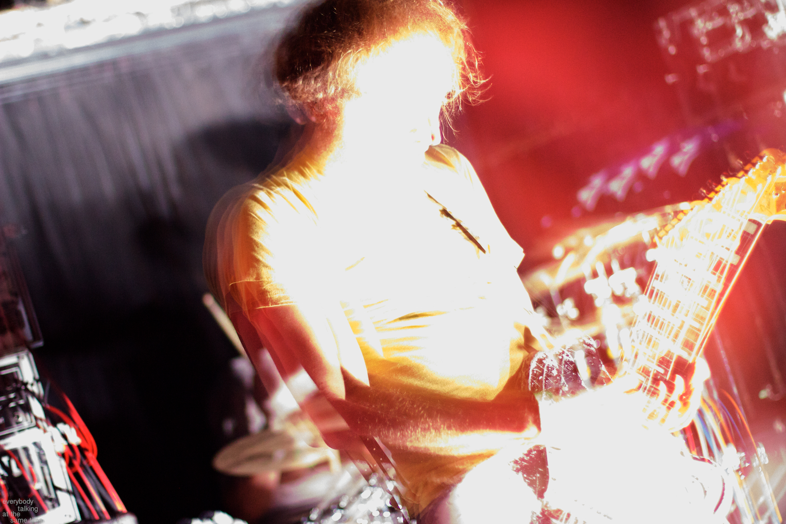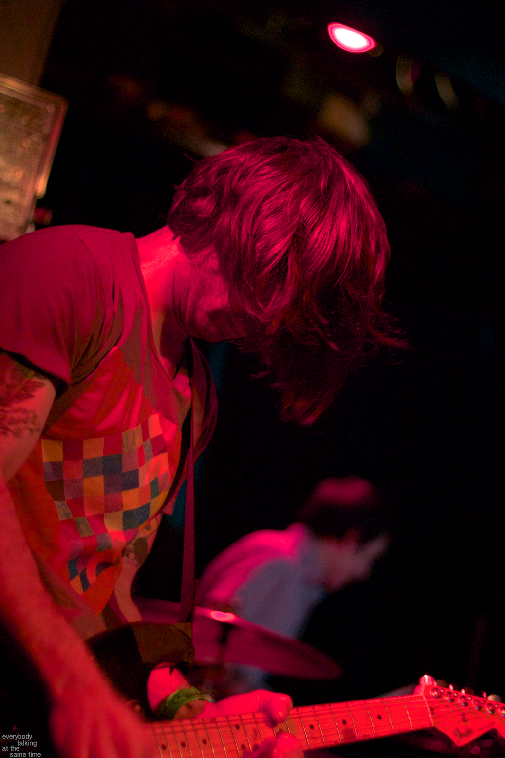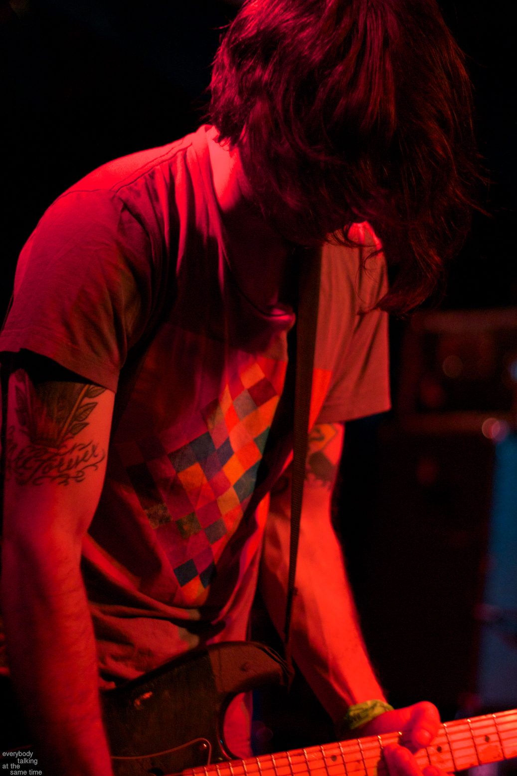 Local trio Young Adults opened up the night with a set of noisy and earnest songs. With a sound that was equal parts shoegaze roar and punk intensity, the band tore into a 40 minute set with concentrated fury. It was an impressive showing from a young band worth keeping an eye on. Philadelphia’s Bleeding Rainbow followed, delivering a varied set that alternated between spacey pop songs and frantic dual-guitar noise freakouts with ease. The band also earns a commendation for following through on a good old-fashioned equipment trashing, which left shards of Stratocaster neck strewn about the stage at the close of their set.