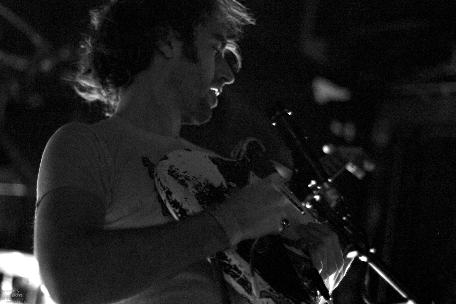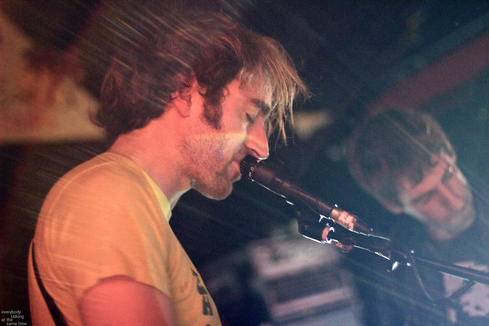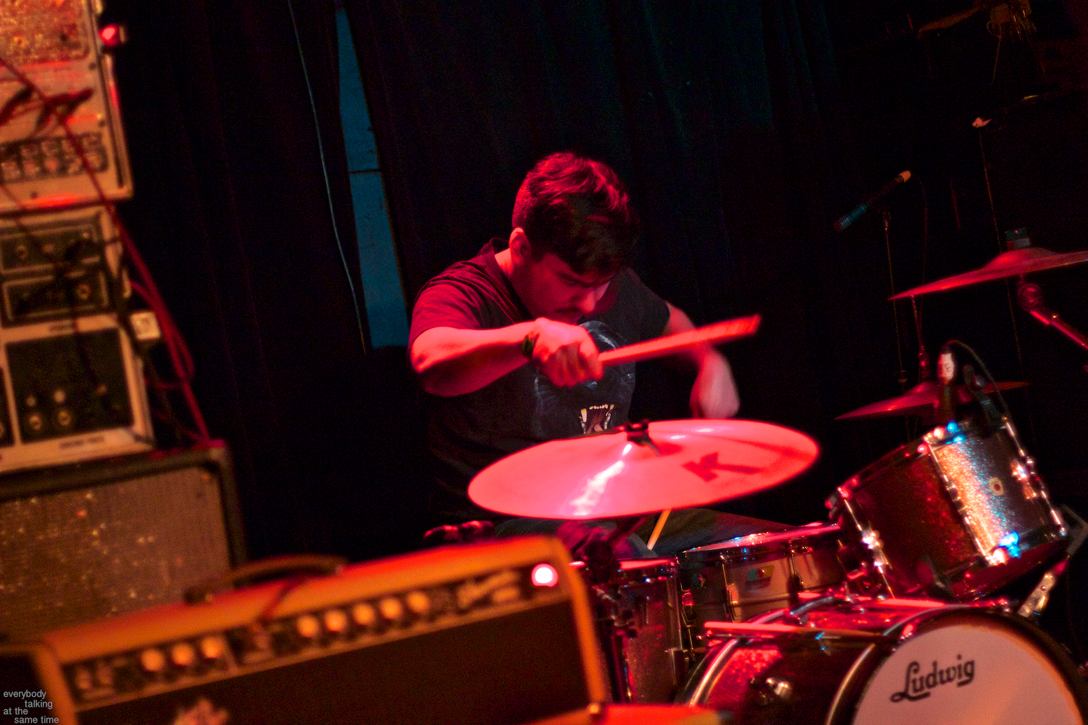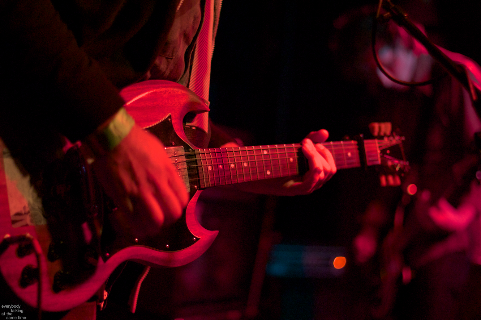Local trio Young Adults opened up the night with a set of noisy and earnest songs. With a sound that was equal parts shoegaze roar and punk intensity, the band tore into a 40 minute set with concentrated fury. It was an impressive showing from a young band worth keeping an eye on. Philadelphia’s Bleeding Rainbow followed, delivering a varied set that alternated between spacey pop songs and frantic dual-guitar noise freakouts with ease. The band also earns a commendation for following through on a good old-fashioned equipment trashing, which left shards of Stratocaster neck strewn about the stage at the close of their set.