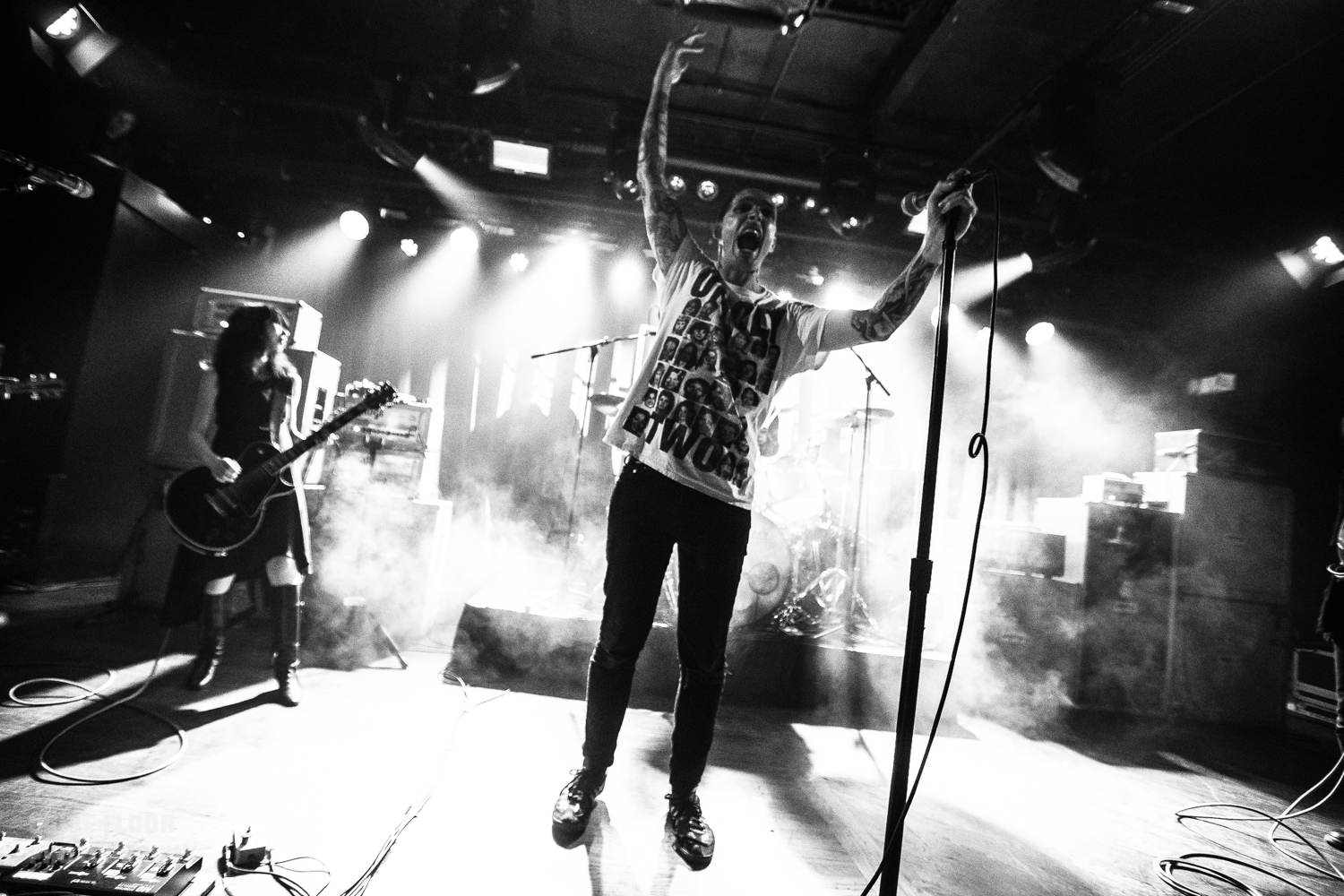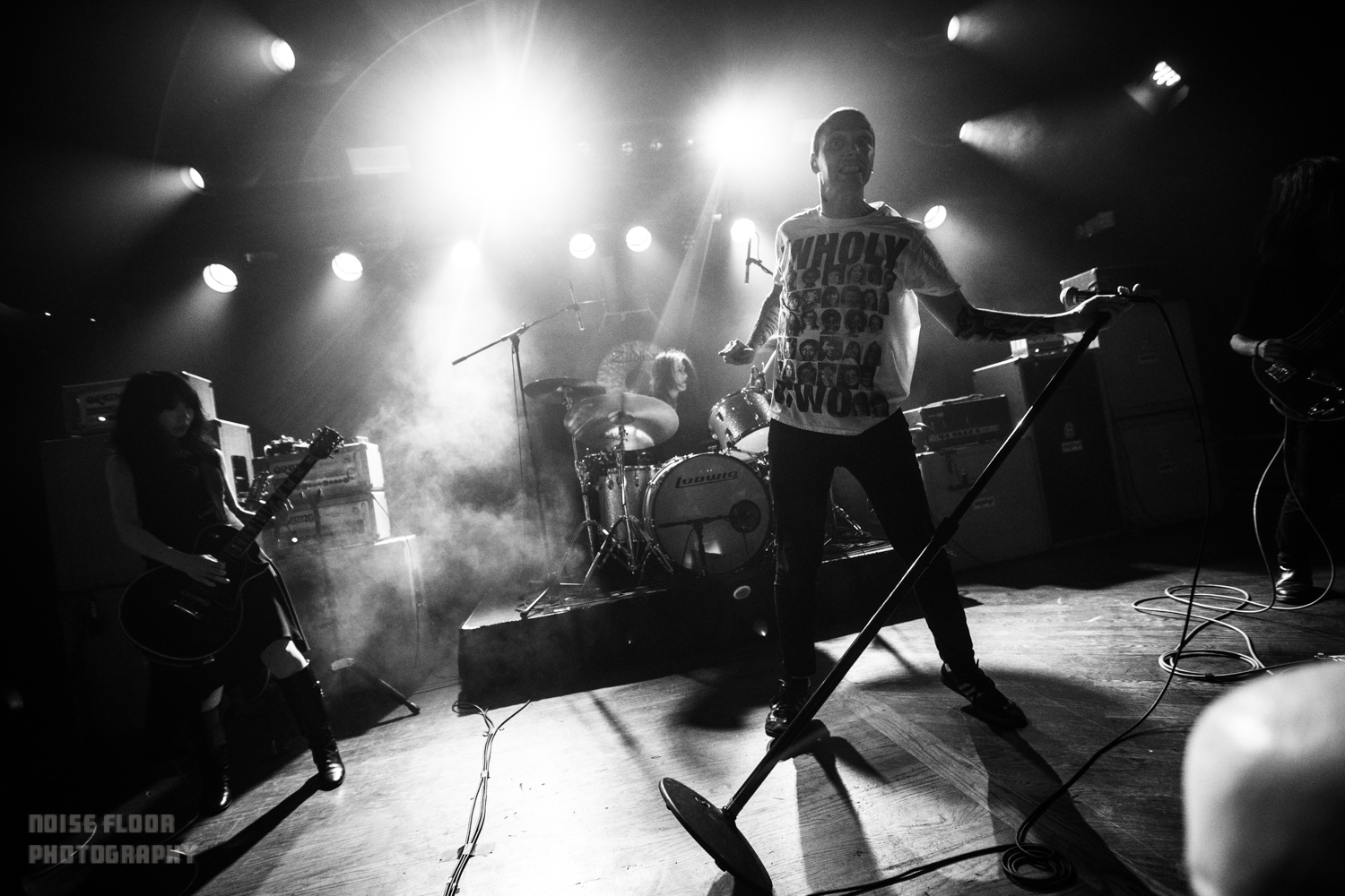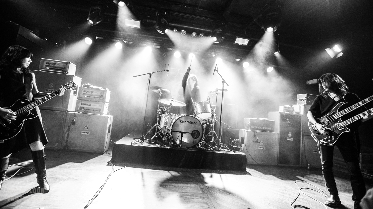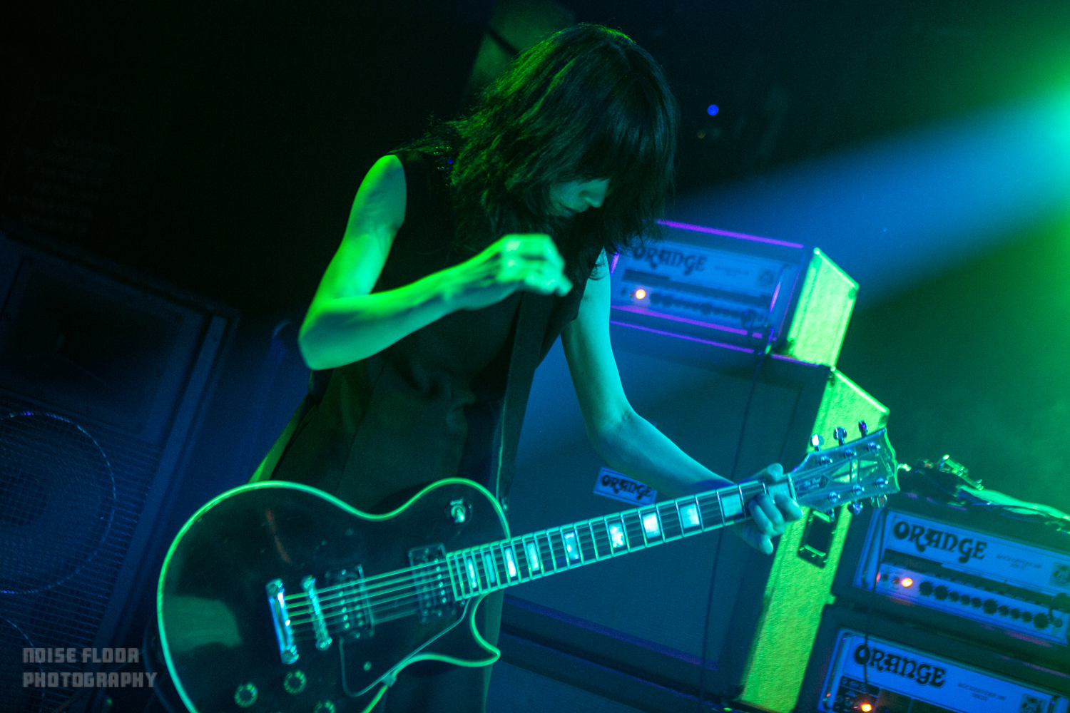 Last Wednesday’s show at the Paradise came in advance of LφVE & EVφL, the band’s first for Third Man Records, and the set previewed a few new tracks along with some recent years’ setlist staples and surprises. Third Man is also handling this year’s long-awaited vinyl reissues of 2003’s Akuma No Uta and Feedbacker, and the evening’s highlights undoubtedly revolved around rare performances of the (abbreviated) Feedbacker epic and Akuma‘s title track, where openers Uniform joined in to whip the crowd into an ecstatic frenzy.