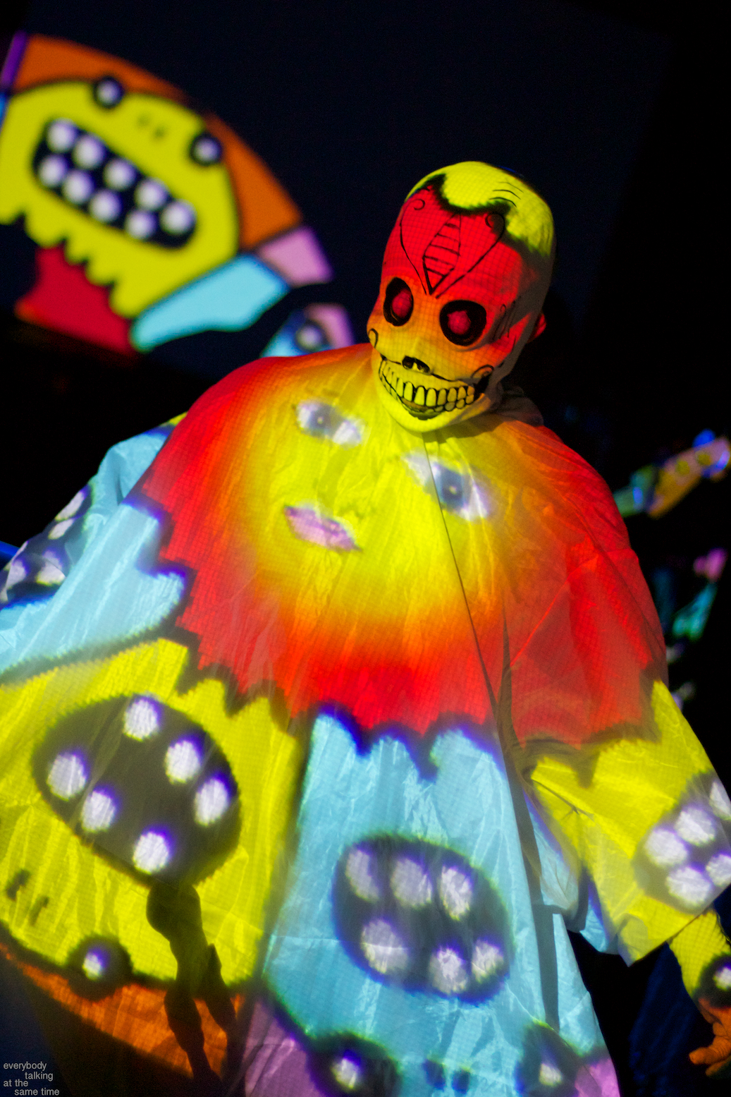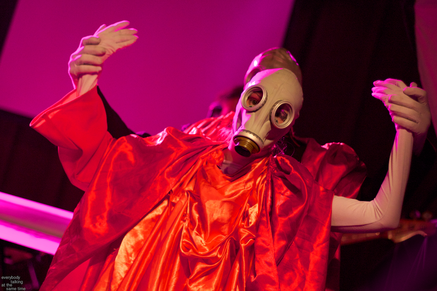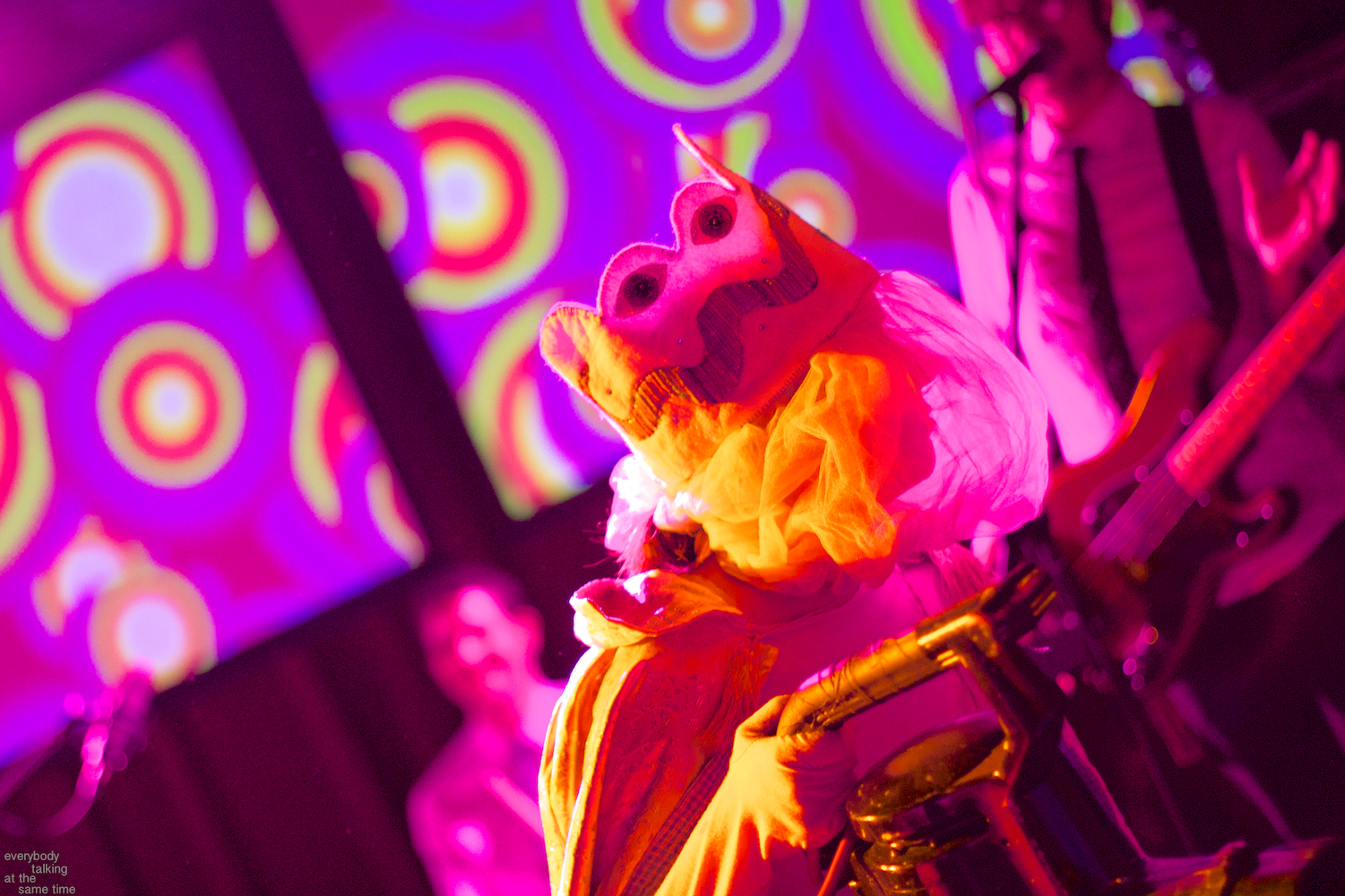 Kevin Barnes and his traveling cast of musicians, crowd surfing luchadores, clowns, skull- and gas-masked individuals and other absurd delights returned to the Paradise last Wednesday for another round of classic Of Montreal theatricality. An energetic set from psych-pop crew Foxygen opened the show. Click on for photos of all the madness.