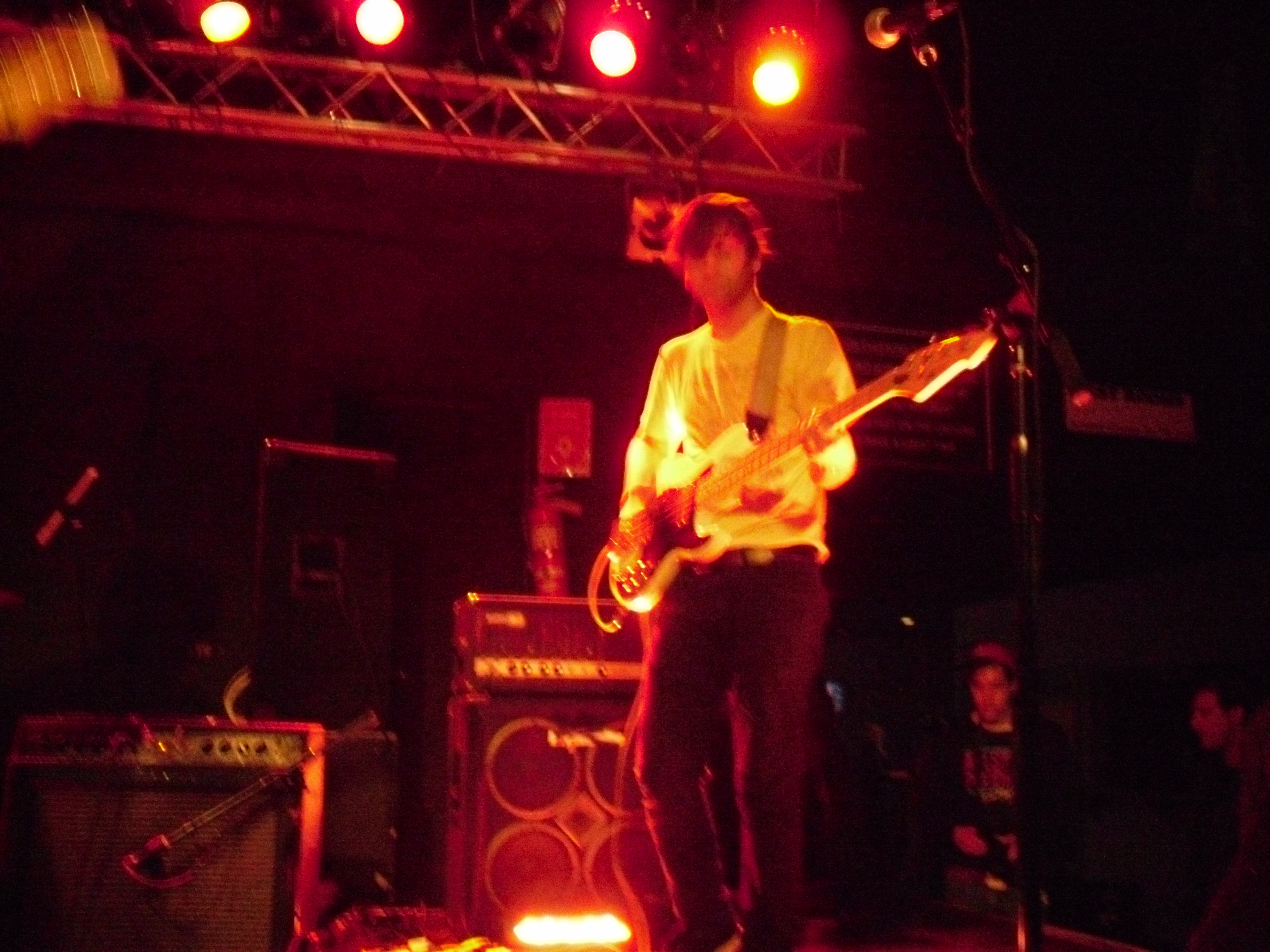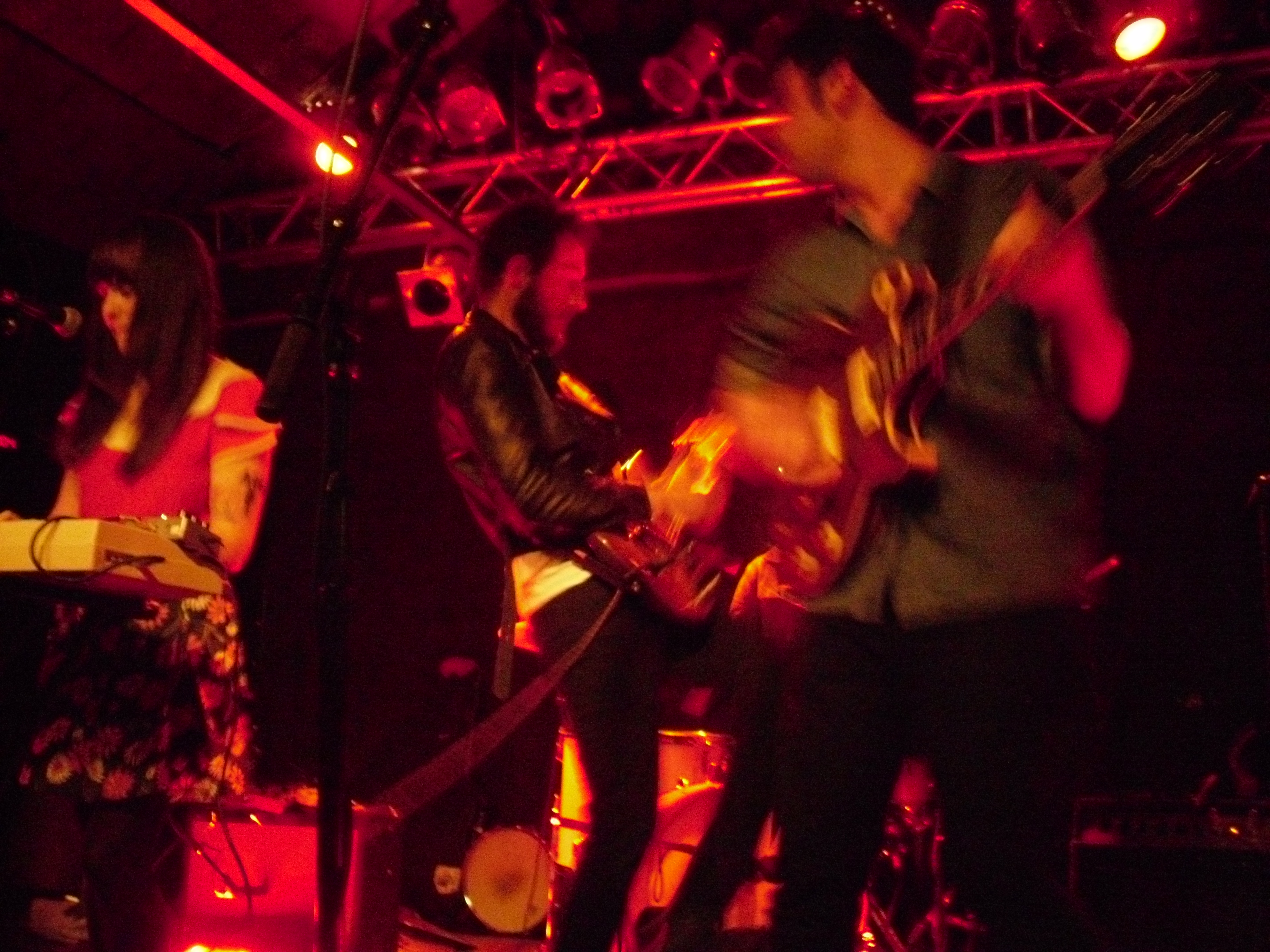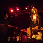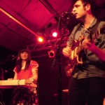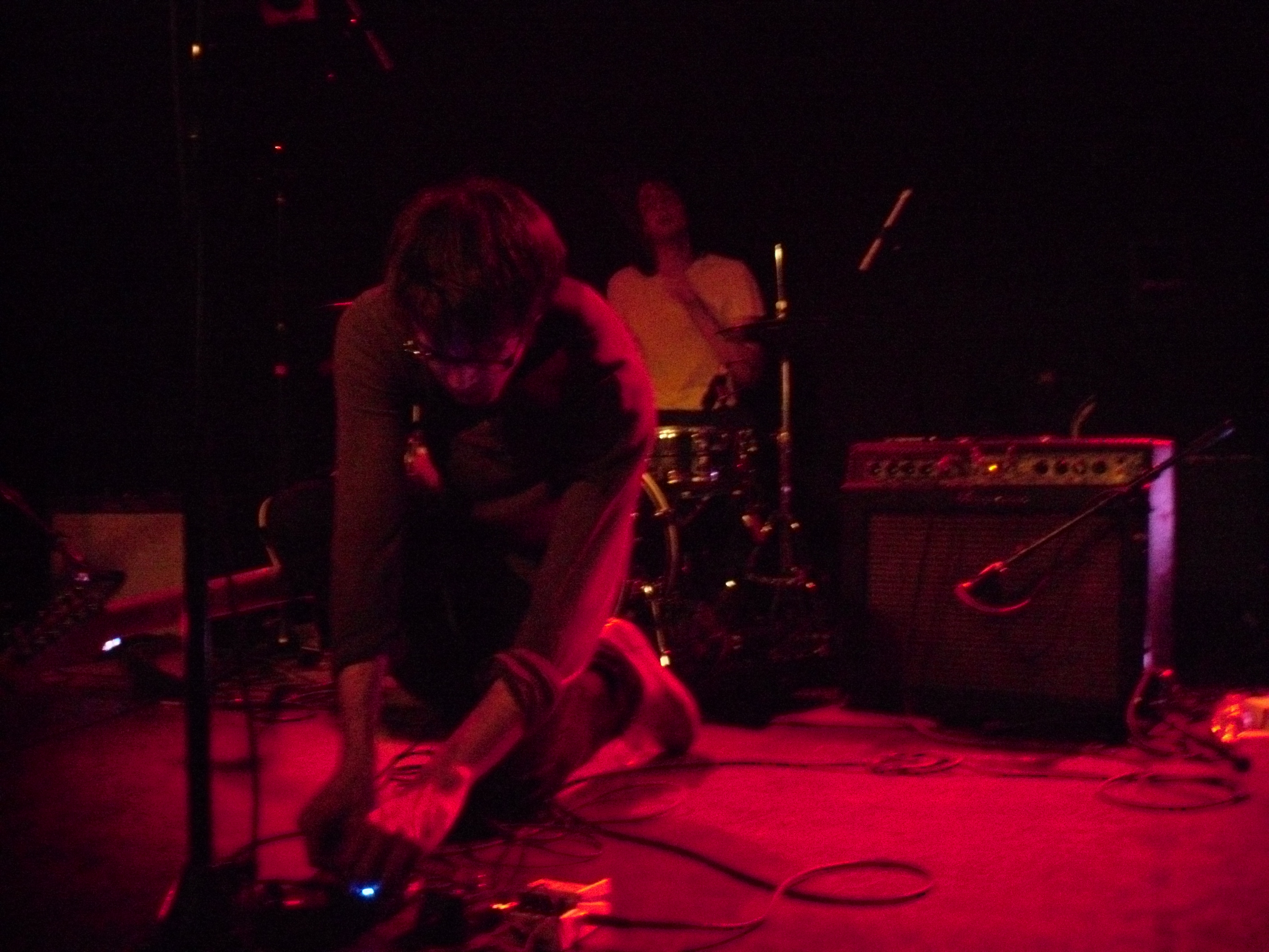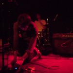 Boston locals The Dirty Dishes were on first with a fantastically unique and engrossing set. Their songs exist in a realm somewhere between My Bloody Valentine-esque shoegaze, slowcore in the vein of The For Carnation or Codeine, and the rhythmic weirdness of nineties math-rock. These are all bands and genres which I greatly adore, and I don’t think it’s an exaggeration to favorably compare this fantastic half-hour set to any of them. The Dishes have a knack for effectively building tension with quietly beautiful instrumental passages and the ethereal voice of singer/guitarist Jenny Tuite. That tension is released through bursts of delayed and fuzzed-out guitar backed by an air-tight rhythm section. That’s not to say the band uses the ‘loud-quiet-loud’ dynamic as a crutch, though. The songs still felt varied, and the volume was applied where it was most advantageous. This set is up there with Carnivores at the Atlas Sound show a few weeks ago for the best opening band I’ve seen so far this year. The band currently has two releases available through Bandcamp, which I suspect will be well worth your time.
