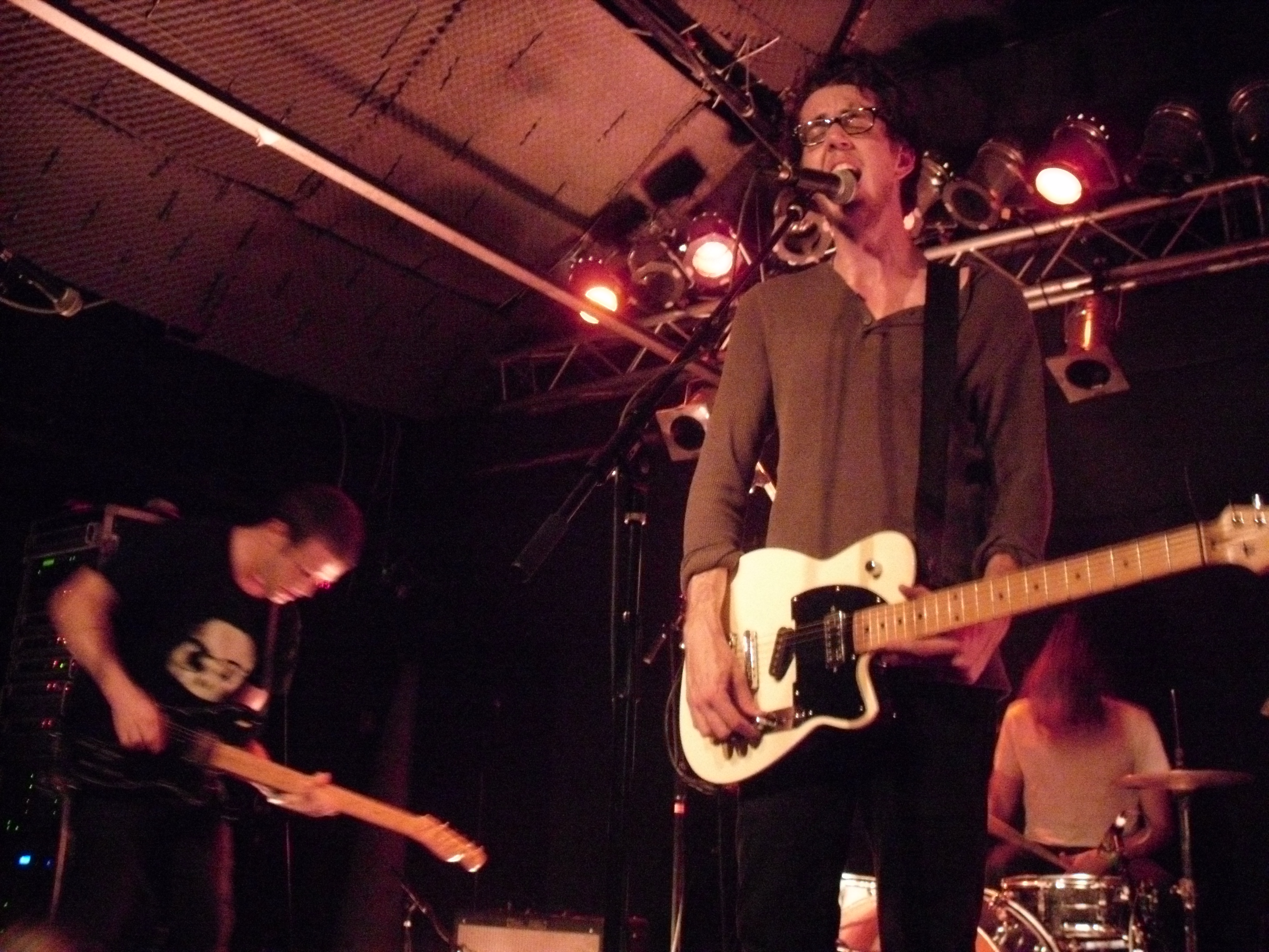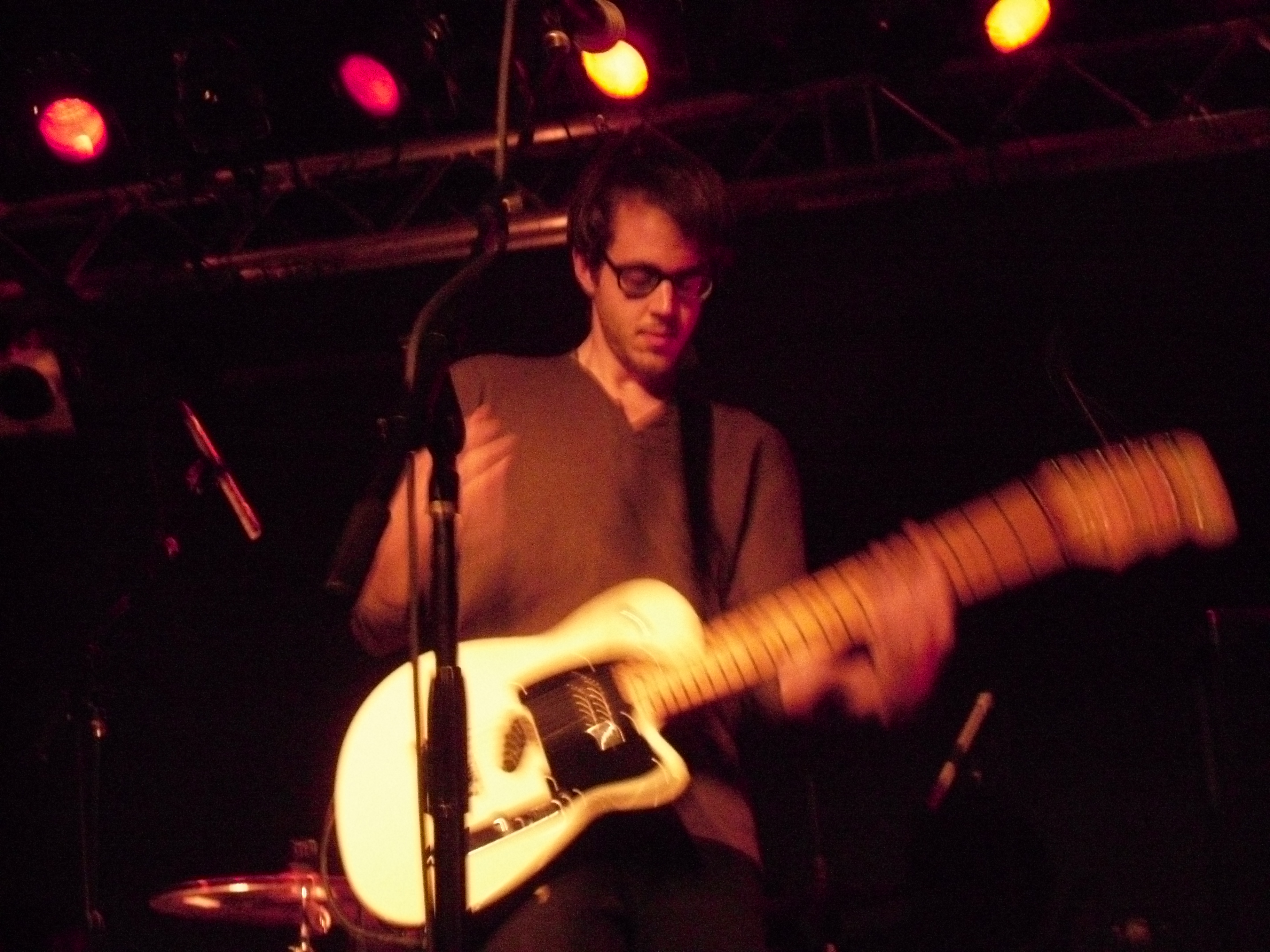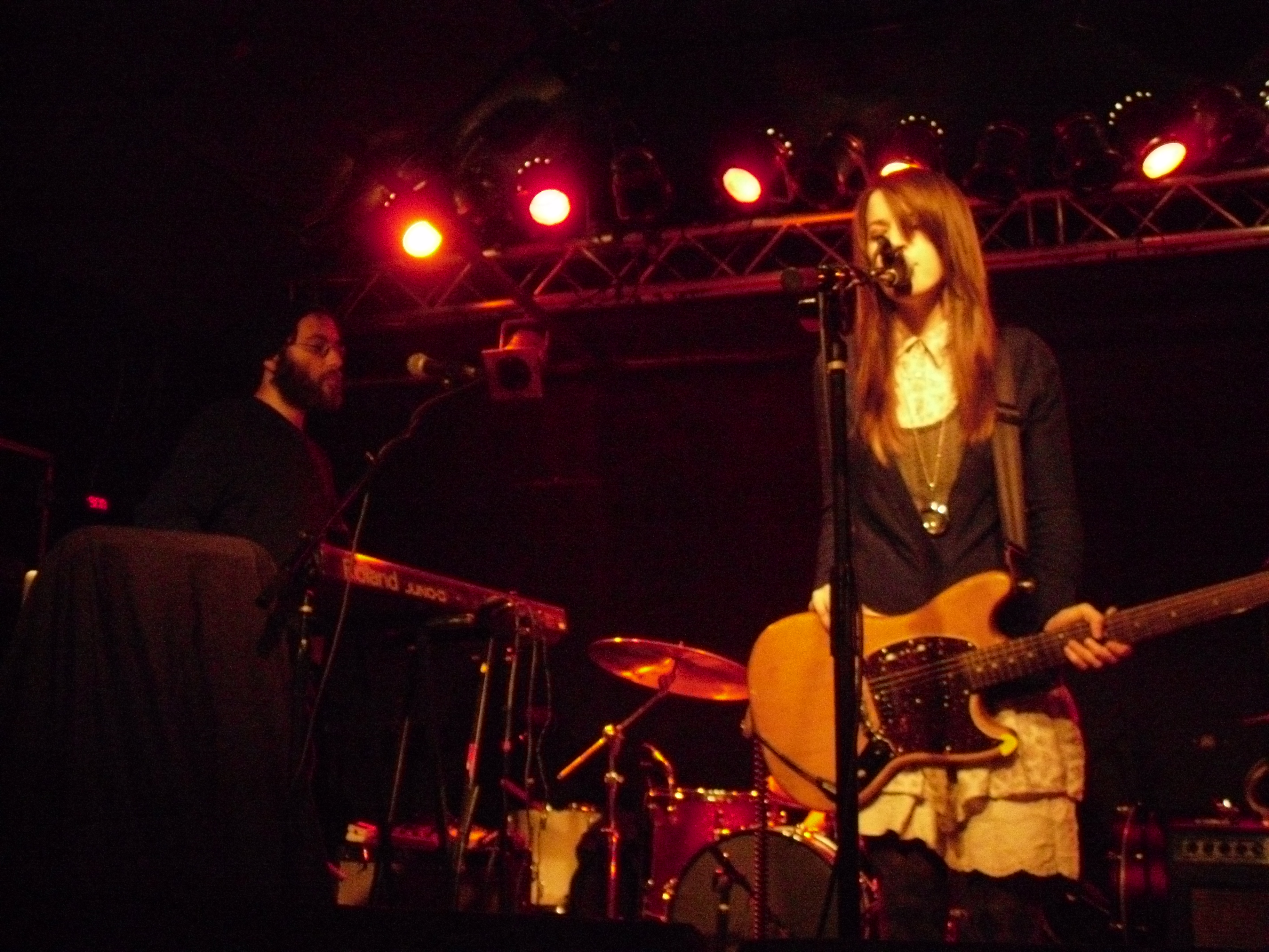 Boston locals The Dirty Dishes were on first with a fantastically unique and engrossing set. Their songs exist in a realm somewhere between My Bloody Valentine-esque shoegaze, slowcore in the vein of The For Carnation or Codeine, and the rhythmic weirdness of nineties math-rock. These are all bands and genres which I greatly adore, and I don’t think it’s an exaggeration to favorably compare this fantastic half-hour set to any of them. The Dishes have a knack for effectively building tension with quietly beautiful instrumental passages and the ethereal voice of singer/guitarist Jenny Tuite. That tension is released through bursts of delayed and fuzzed-out guitar backed by an air-tight rhythm section. That’s not to say the band uses the ‘loud-quiet-loud’ dynamic as a crutch, though. The songs still felt varied, and the volume was applied where it was most advantageous. This set is up there with Carnivores at the Atlas Sound show a few weeks ago for the best opening band I’ve seen so far this year. The band currently has two releases available through Bandcamp, which I suspect will be well worth your time.