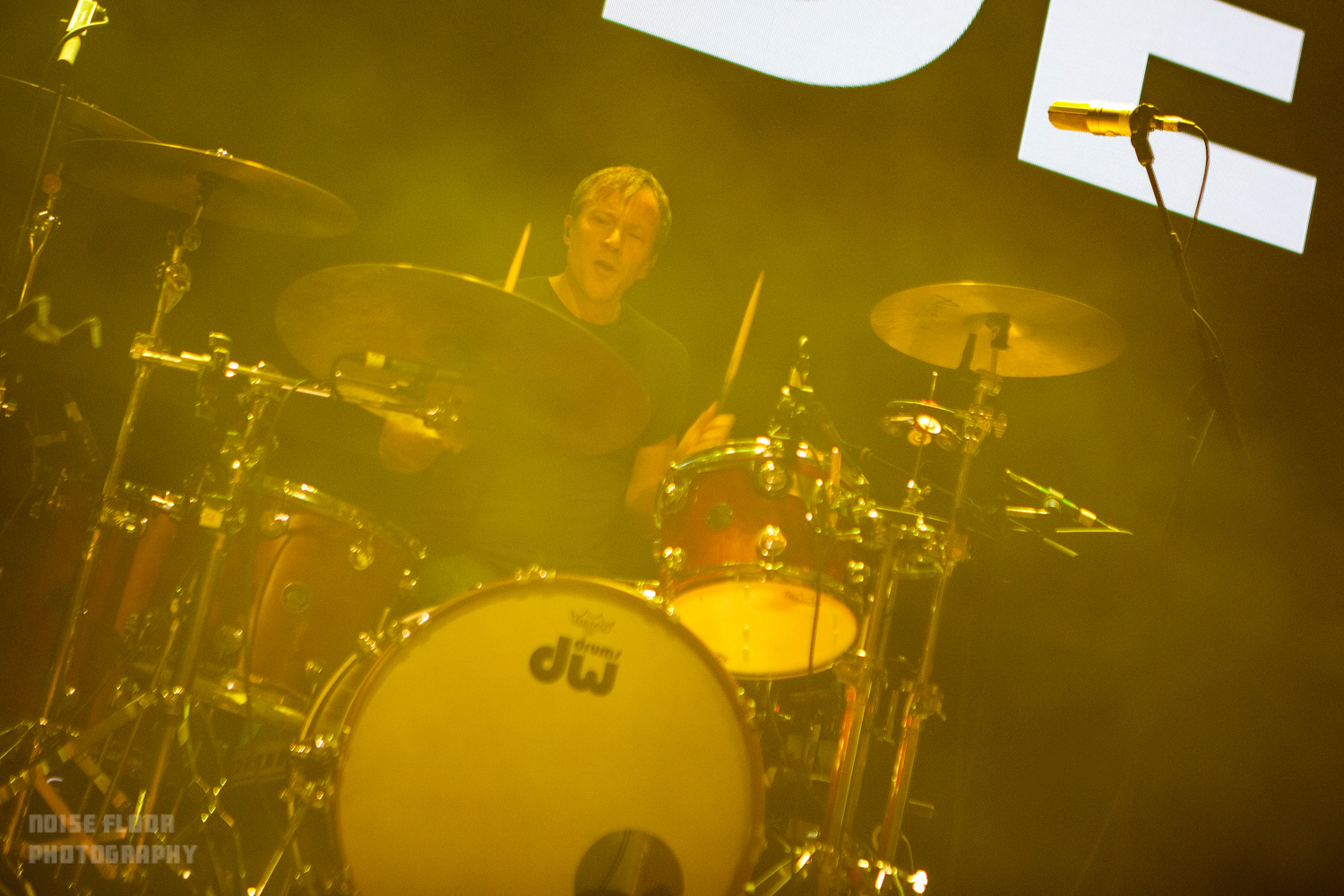 For Thurday night’s show, it was The Charlatans and their ’92 sophomore effort Between 10th and 11th up first. The band’s sound would evolve and modernize over time, but this early Charlatans era found them zoned in on a danceable soul-and-psychedelic swirl. The fivesome brought that sound charging to life on stage, with a mix heavy on Tony Rogers’ vintage organ tones and drummer Peter Salisbury and bassist Martin Blunt’s grooving rhythm section. Frontman Tim Burgess played ringmaster to the party, effortlessly charming an already-ecstatic, ever-smiling. flag-waving crowd.