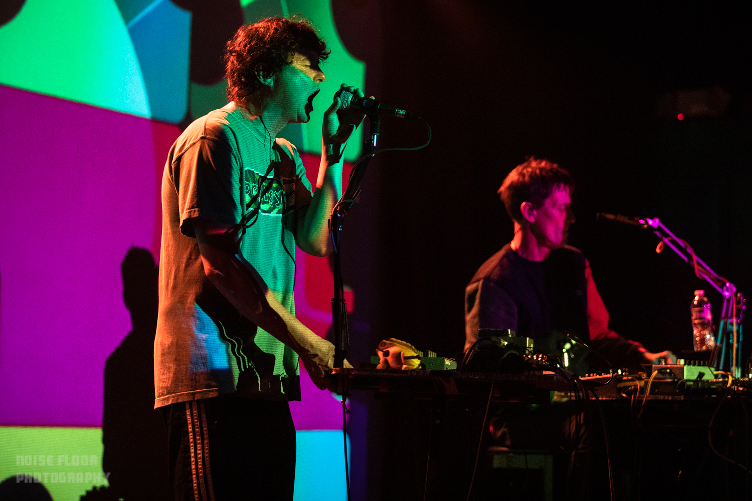 The pair took to their Paradise set at two podiums of gadgetry, immediately subsumed in colorful projections that evoked the playfulness of the songs, and performed Reset‘s nine tracks front to back. In contrast to the sometimes droning, freeform nature of Lennox’s solo shows, the set was tight and bright, with the two trading off vocals, noisemaking and handclaps. The show’s second half / extended encore featured a few solo cuts from both artists, spotlighting Kember’s 2020 release All Things Being Equal and reaching way back to Lennox’s classic Person Pitch for “Comfy in Nautica.” No “Bros” for us, sadly – they saved that one for a few nights later at Knockdown Center.