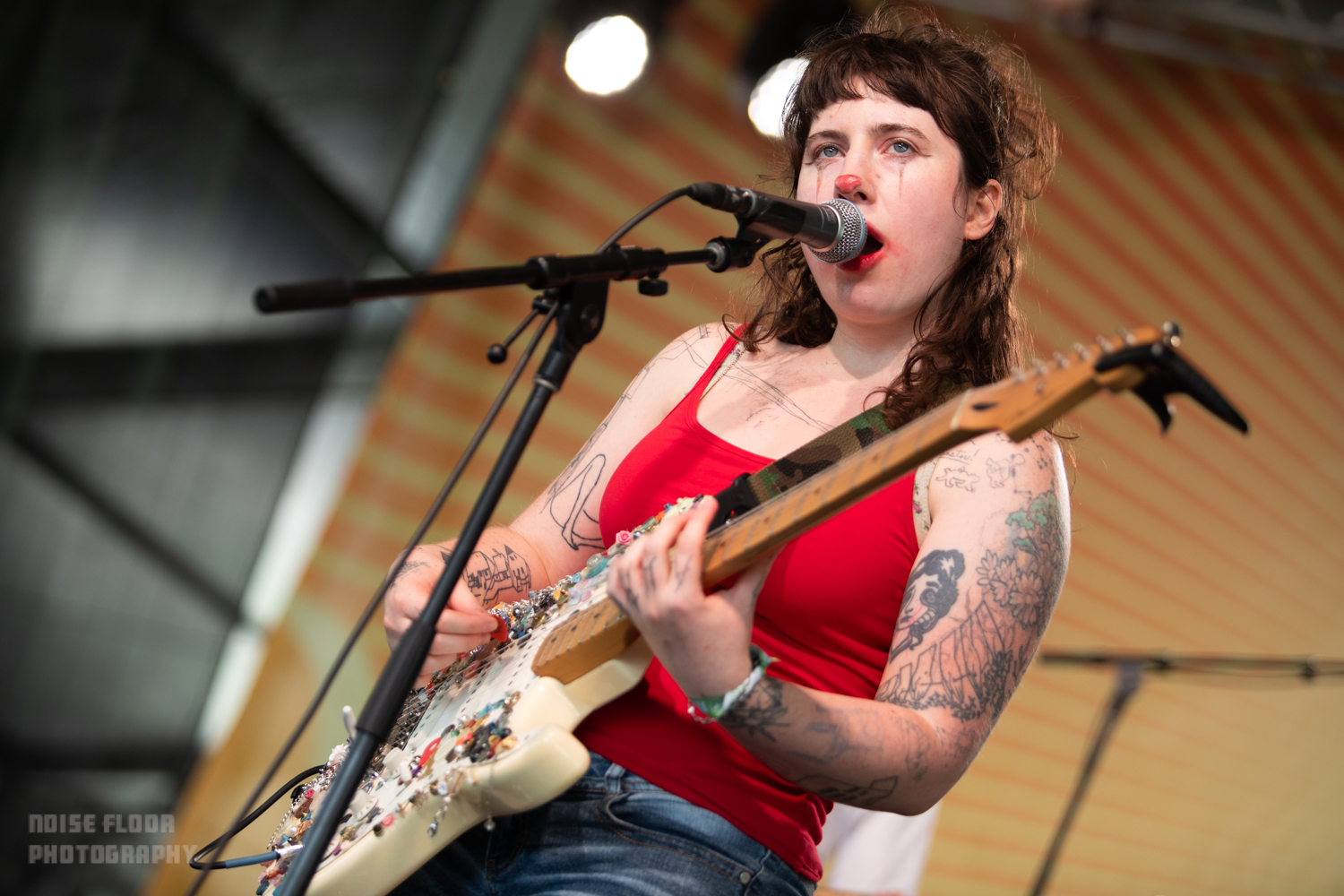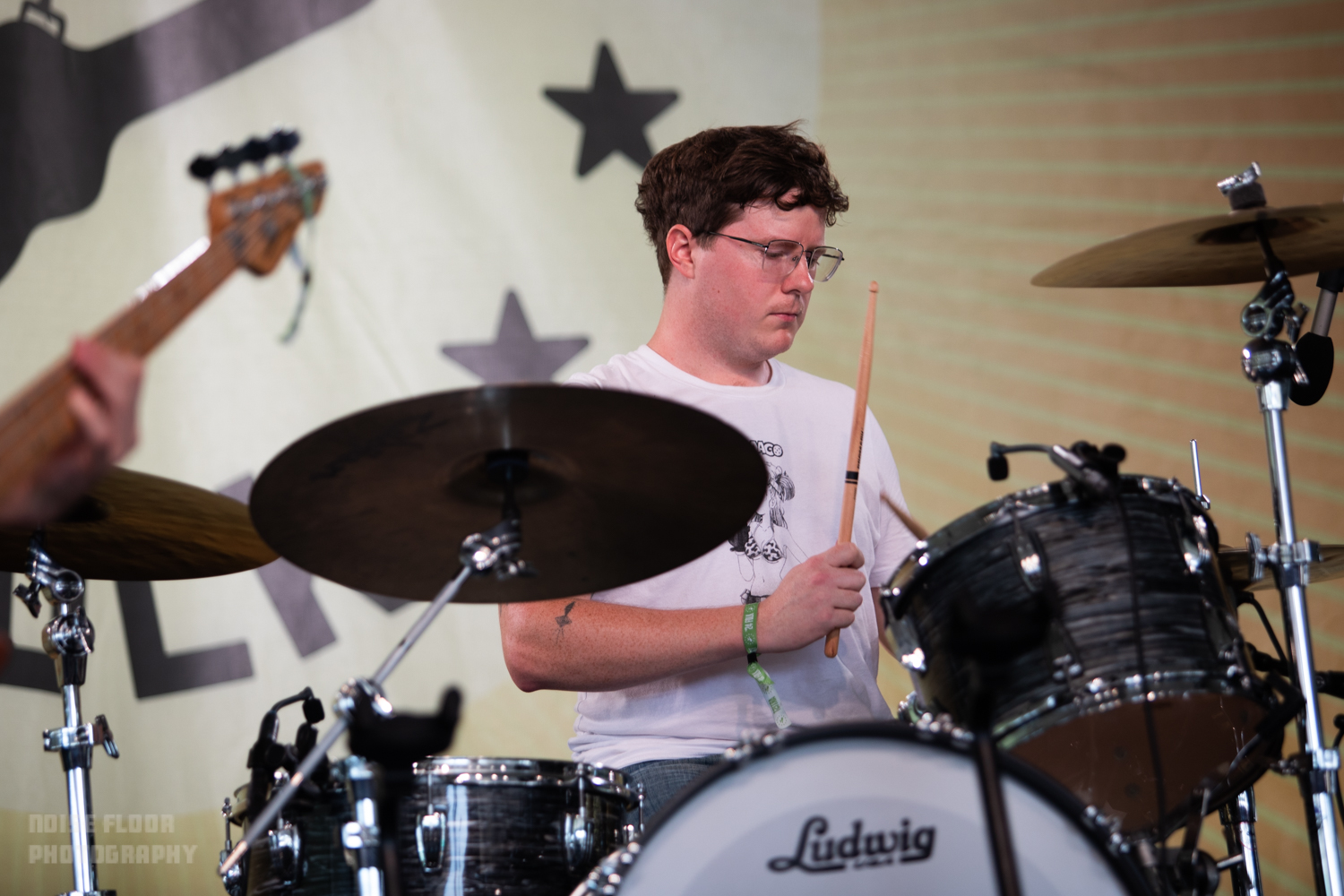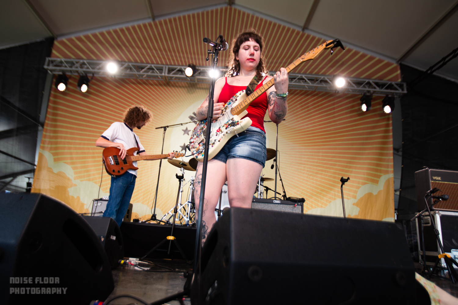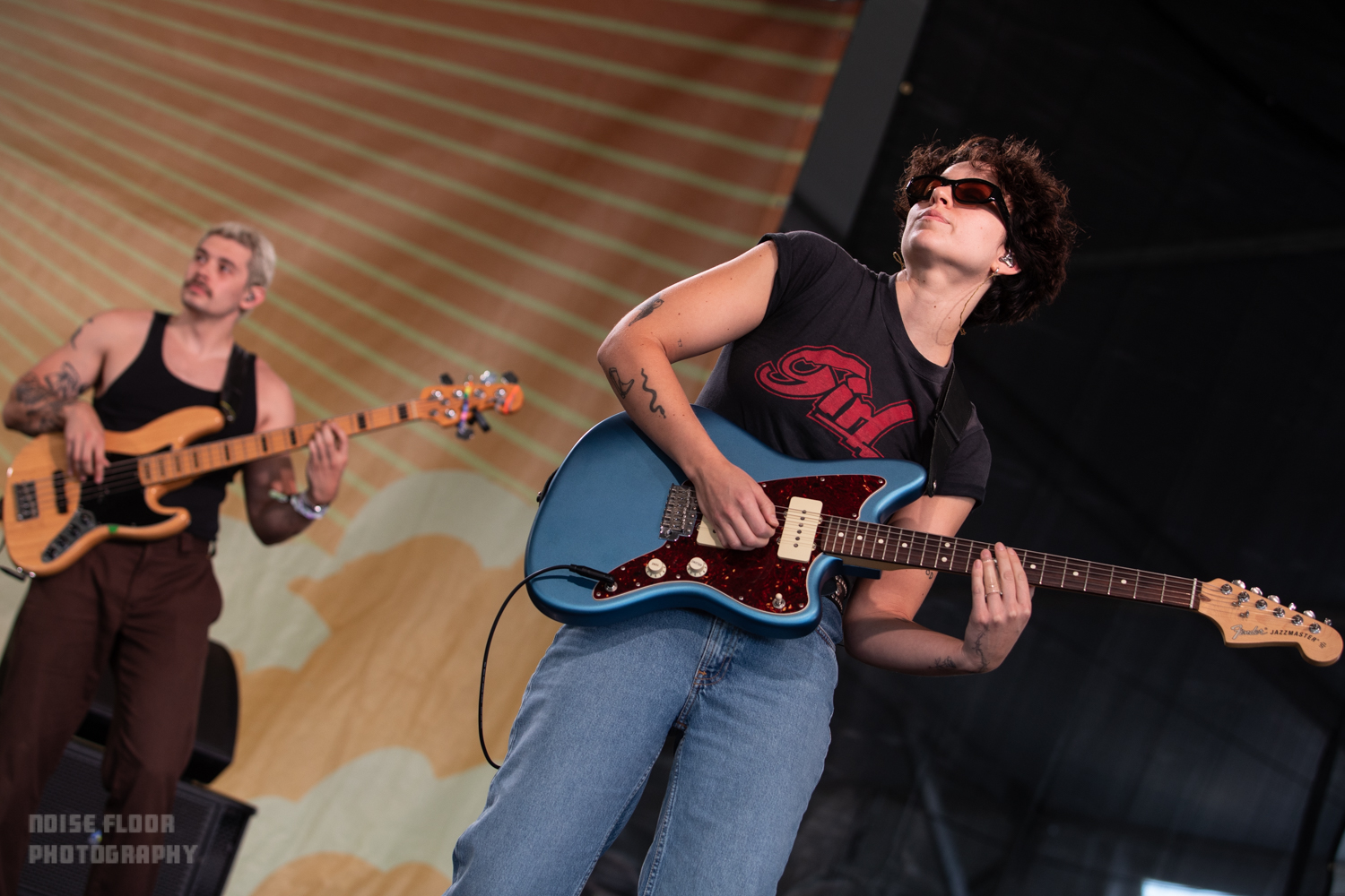 The fest’s sunny first day began waylaid by a recurrent weekend issue of backup at the front gates, where many patrons hoping to catch early sets by Big Thief’s Buck Meek or bluegrass torchbearer Molly Tuttle (myself included) were instead ensnared in agonizingly lengthy security check lines. Thankfully, things cleared in time for one of my more anticipated sets of the weekend from Asheville’s Wednesday. The alt-country-gazers were a disappointing scratch from Wilco’s Solid Sound Festival in June thanks to an ill-timed storm, and the prospect of missing them again at Newport felt mildly torturous.