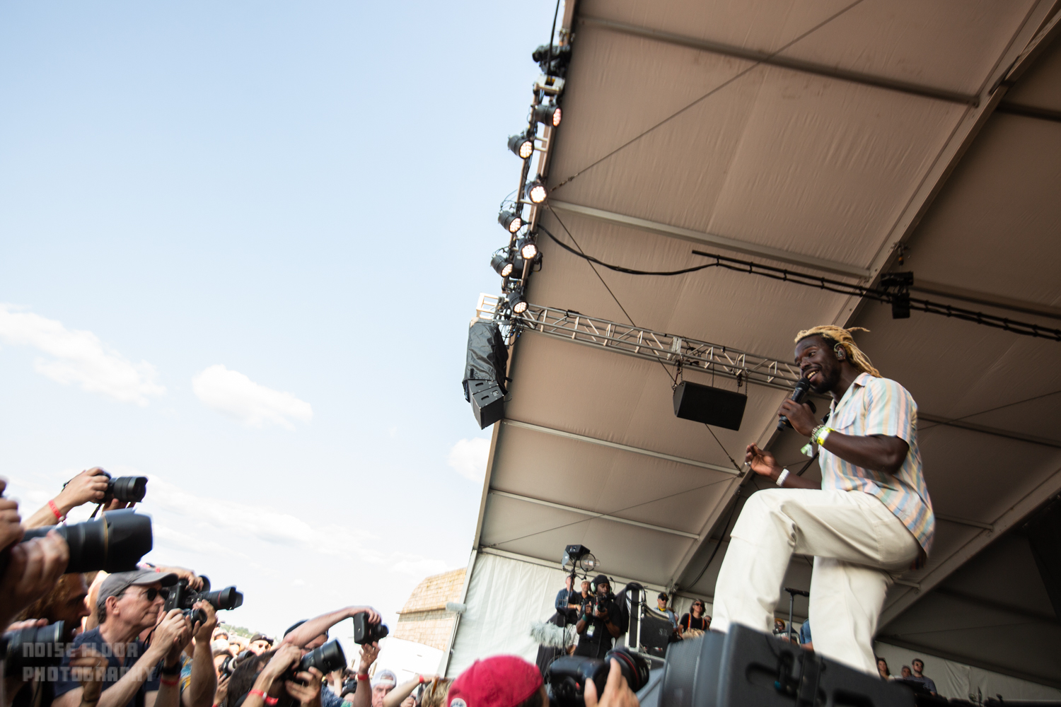 Elsewhere, Greater Boston indie/alt-rock vets Guster overcame the first of the weekend’s several battles with malfunctioning sound at the Fort stage to deliver some joyous tunes appropriate for the summertime revelry, ahead of a slick soul-psych party from Black Pumas. Singer Eric Burton proved an eminently charming frontman, hopping down into the photo pit and into the crowd at the set’s start to hype things up.