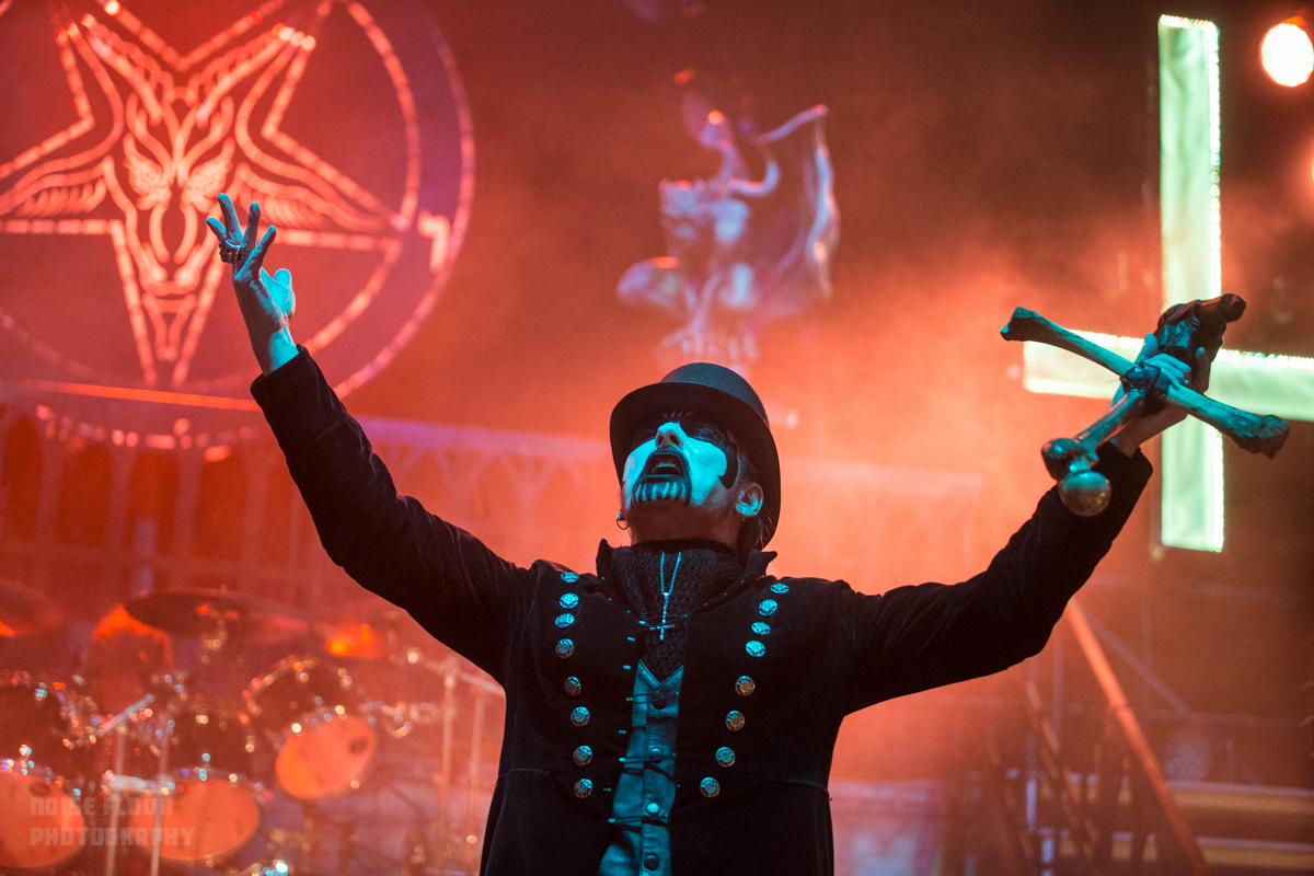 King Diamond took the stage to the pre-recorded dialog of “Out of the Asylum” – the intro from 1988’s “Them” – and segued into “Welcome Home” while a costumed “Grandma” was wheeled on stage. Abigail would be the focus of the set’s second half, but that didn’t mean there wasn’t room for excerpts from the band’s other long-form horror tales in the first. Just in case the content of the songs themselves wasn’t creepy enough, King’s stage setup consisted of two staircases with a connecting catwalk, flanked by two enormous inverted crosses and a number of gargoyles with a large pentagram in the center of it all, naturally. He emerged with his signature black and white makeup and microphone holster composed of bone, howling in a remarkably on-point falsetto and throwing every bit of theatricality forward for an enthusiastic crowd. Three songs had me longing for more, even as I departed to see a favorite band elsewhere. Here’s to hoping the promised Blu-Ray release documenting this tour does justice to the full set.