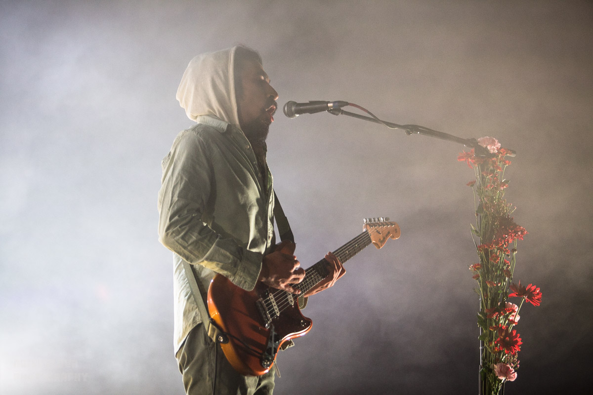 New Jersey’s The Front Bottoms have always leaned less toward my taste, but the group put on a fun and energetic show that left me significantly less cold than their recent Boston Calling appearance. They riled up the general admission pit to a greater degree than most opening bands could ever hope for, and the living room stage setup – complete with friends drinking cheap beer on the couch and a TV playing “Jaws” – was a nice touch.