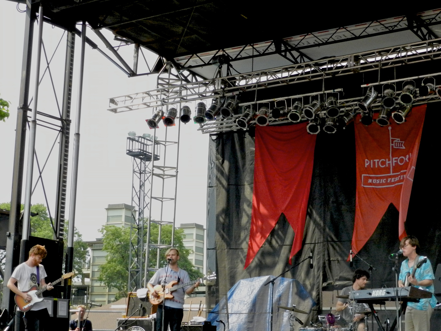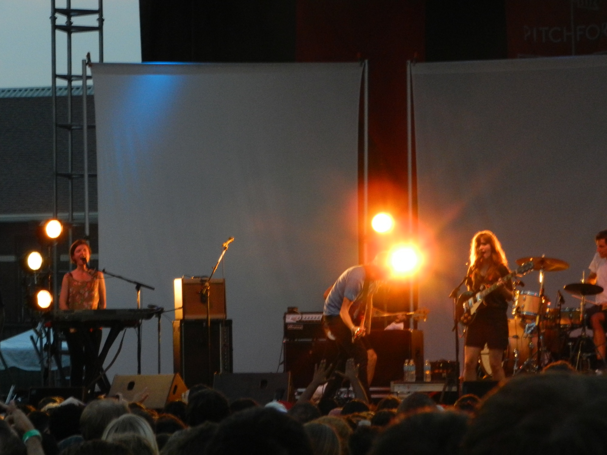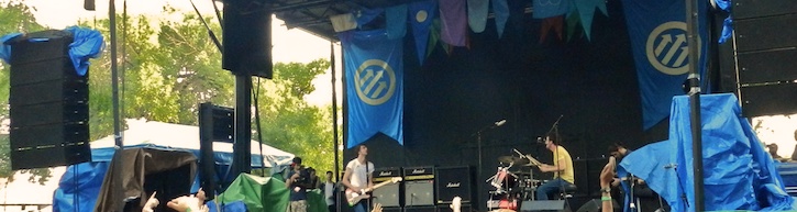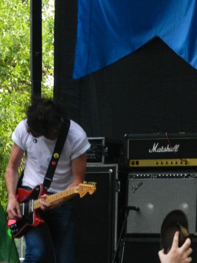 San Francisco’s Lower Dens started things off at the Red Stage with a set of restrained but propulsive post-punk tunes. Their sound was a haze of guitars and keyboards punctuated with vocals and a driving krautrock rhythm section. The style was all there, but the songs began to blend together by the halfway point. To be fair though, that could be almost entirely a result of my limited familiarity with their catalog. Still an enjoyable introduction to the weekend.