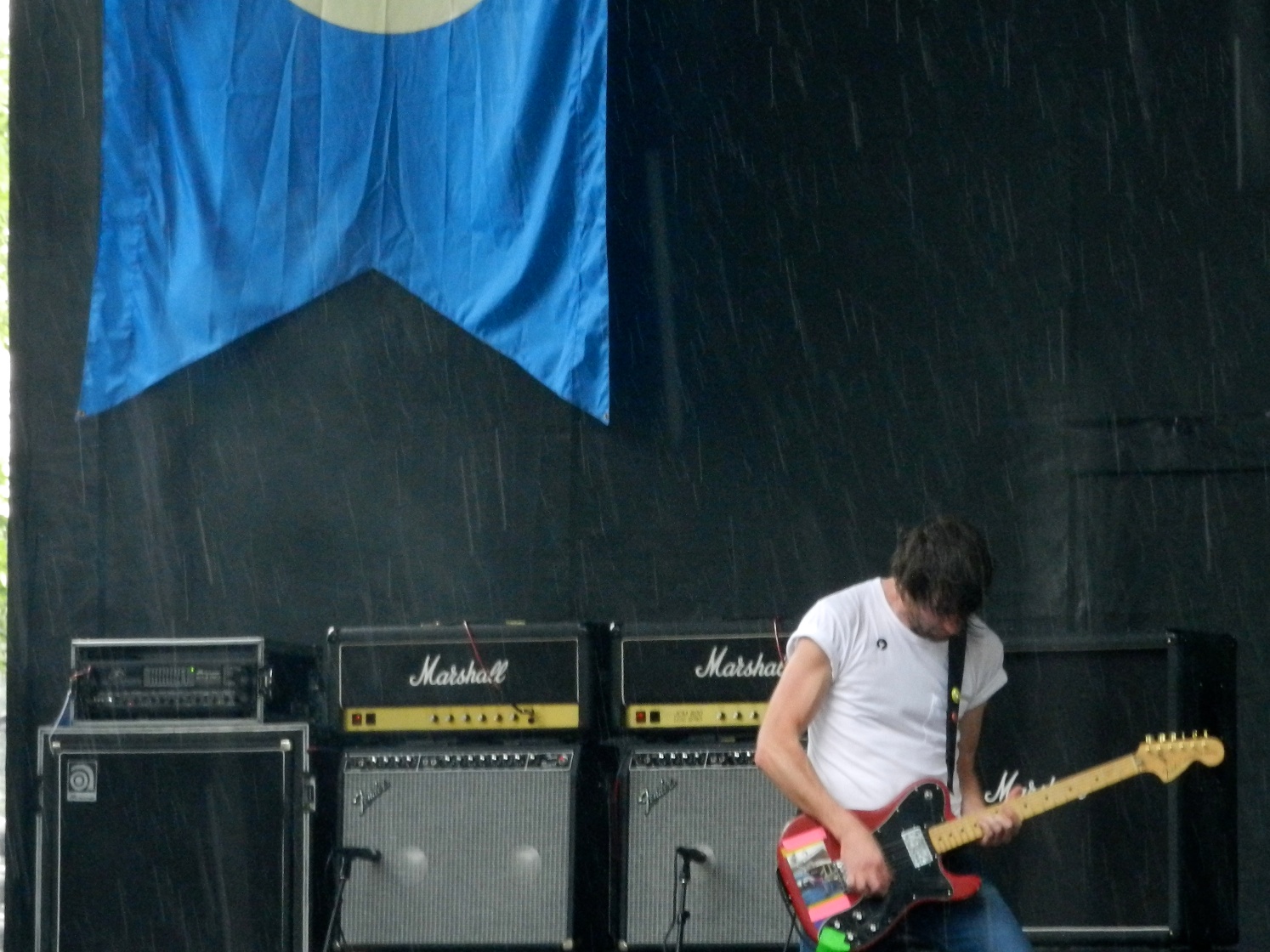 The rains began to close in again as Tim Hecker took the stage over at Blue. He would be the single Friday act for which inclement weather was less a frustration and more an appropriate mood-setter. Hecker conjured up a storm of his own with waves of ambient noise and crushing swells of bass. The results were moments of transcendent earth-shaking brilliance. Hecker is pretty much the ultimate ‘man with a laptop’ act though, and hence there was little to see. That, in combination with sound-bleed from the A$AP Rocky set across the field during quieter moments, led to a distracted and talkative crowd that ruined the music’s mystique after a while. Atmospheric noise and drone artists like Hecker are tailor-made for small, dark venues much more so than outdoor festivals.