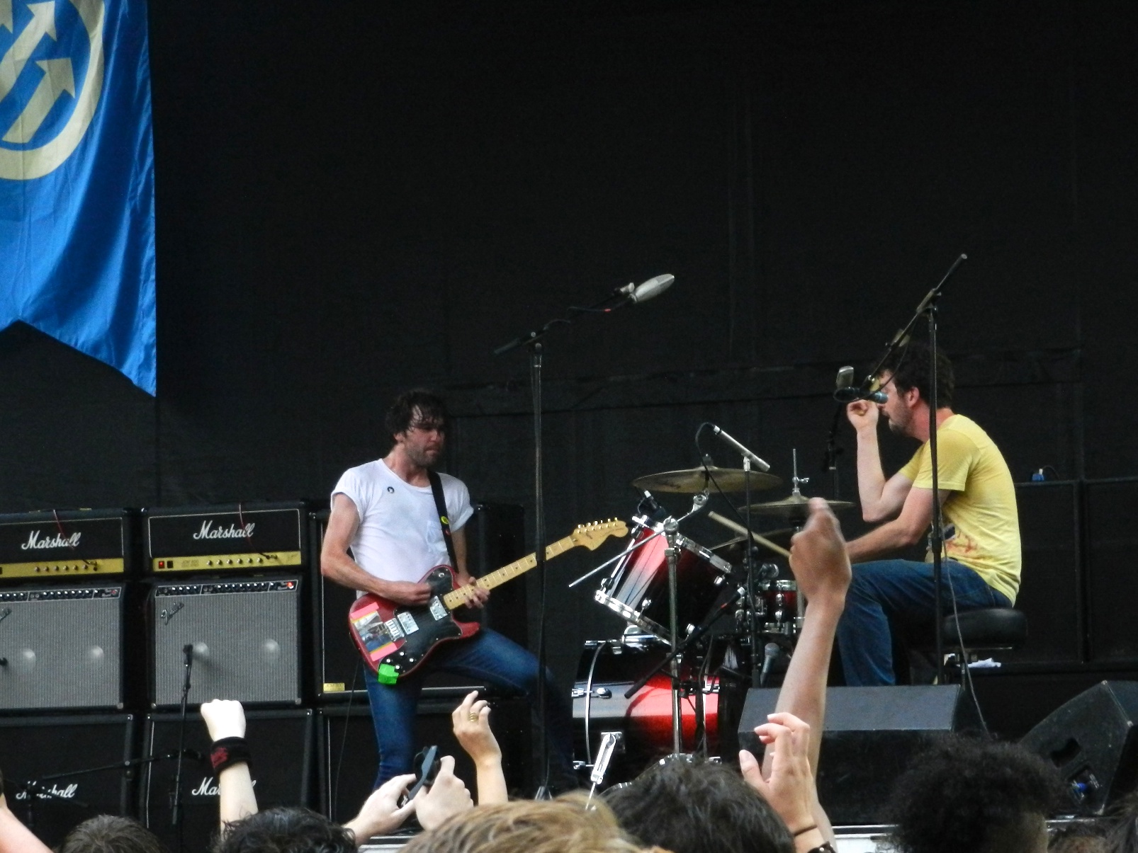 One of Friday’s biggest draws was surely Vancouver garage rockers Japandroids, who managed to pack an unfathomable number of people around the Blue stage. In direct contrast to Hecker, Japandroids are pretty much the ultimate summer festival band. The guitar and drums duo of Brian King and David Prowse tore through cuts from this year’s Celebration Rock and 2009’s Post-Nothing with an unstoppable energy as the sun finally re-emerged. Japandroids are as no-nonsense as a rock band can come, both in their sound and their approach to live shows. “We only have 45 minutes, so I’m not gonna talk after this,” King told us, in an effort to cram in as many songs as possible. The set included the highlights from both records, inspiring enthusiastic fist-pumping shout-alongs from start to finish. The band is clearly popular enough at this point to have played one of the two larger stages across the field, but the packed and sweaty atmosphere of Blue felt more appropriate. It was the closest approximation to the band’s much-heralded club shows, and sufficiently proved that they’re earning their reputation as a stellar live act.