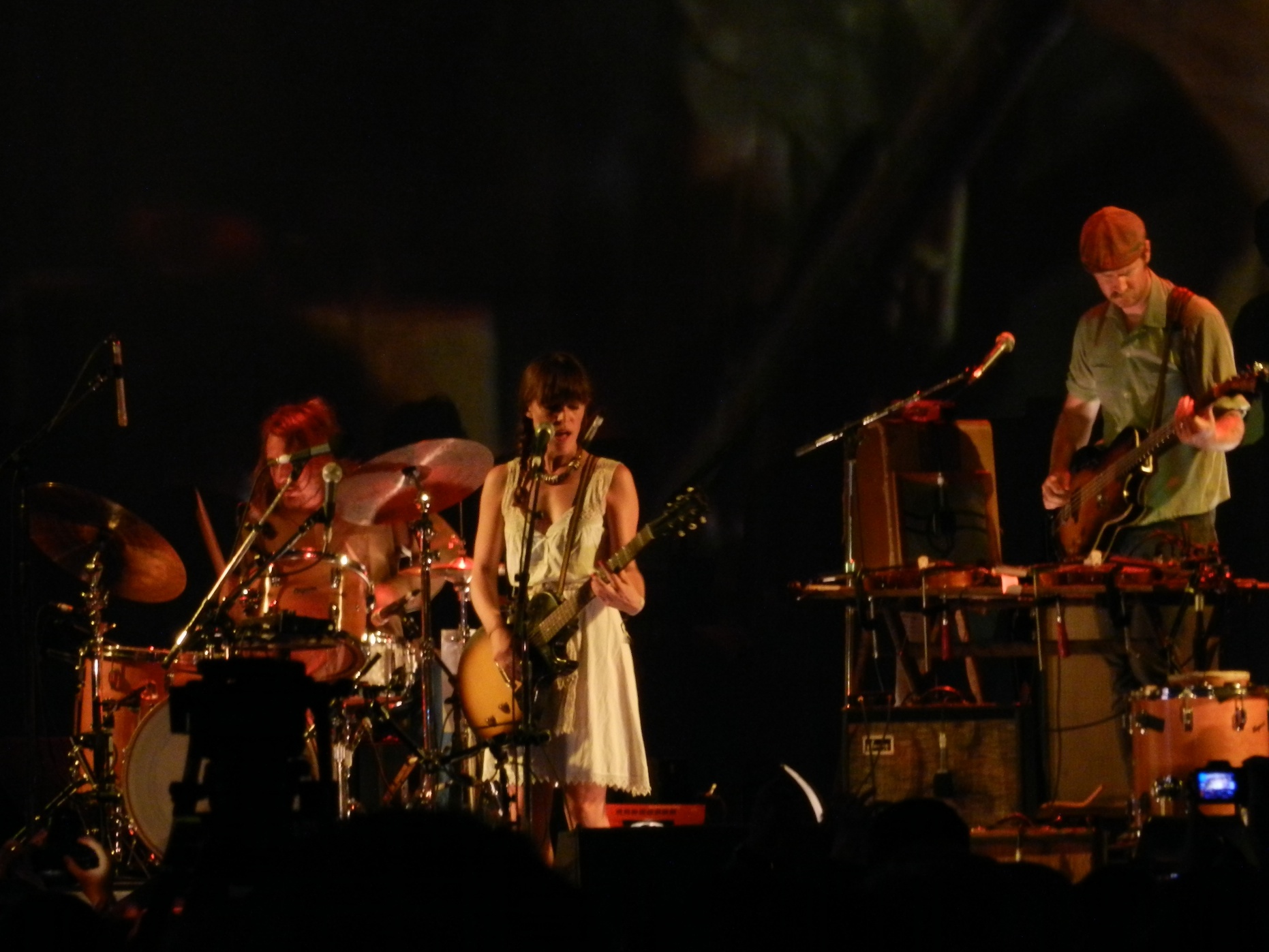 I had my doubts about Canadian songstress Leslie Feist as a Friday night headliner, but her set ended up being a pleasant surprise. Complete with a backing band including a second guitarist, keyboardist, drummer and a trio of backup vocalists, Feist breathed new life and energy into her oft-restrained album cuts. The set drew heavily from last year’s Metals, including opener “The Bad In Each Other” and “Comfort Me,” which started off slow but built to a stomping climax and an audience singalong. The crowd’s “na-na-na” chants “made our arena rock dreams come true,” Feist told us. In general, the songs came across as more muscular than their album counterparts, including a guitar heavy(er) “My Moon My Man” from The Reminder. Feist herself was in high spirits, with a playful and confident stage presence which made the set all the more enjoyable. An unexpectedly strong finish for day one.