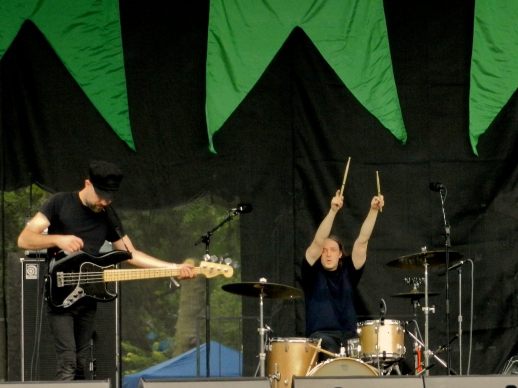 Instrumental psych/noise rock trio The Psychic Paramount opened the Green stage Saturday afternoon with a heavy, relentless set. Their barrage of tight drumming, pummeling bass lines and unhinged guitar was simultaneously overwhelming and engrossing. The songs were long, but rarely stayed in one place for more than a few minutes; noise-jam suites if you will. If the early arrivals were still half-asleep from Friday night, they were certainly awake by the end of this set.