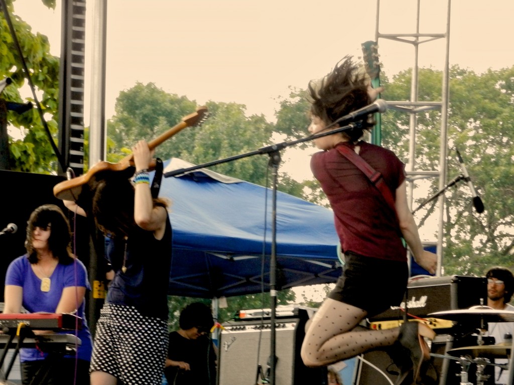I passed by a winding down but incredibly fun looking Flying Lotus performance on my way to the Red stage for Wild Flag, who would proceed to deliver Saturday’s purest and most badass rock show. A cover of the classic Television tune “See No Evil” opened a set which also covered a couple of new songs and highlights from the band’s self-titled record. Carrie Brownstein and Mary Timony switched off on lead vocal duties, with keyboardist Rebecca Cole and drummer Janet Weiss on backup. Brownstein and Timony exude rockstar charisma, and their dueling guitar work was among the weekend’s finest. Weiss’ powerful, propulsive drums held down the rhythm section, while Cole’s organ tones added texture or took on a central role with songs like set-closer “Romance.” A mega-extended take on “Racehorse” was the set’s most awe-inspiring moment, ending with both guitars held aloft and waved through the air to bring forth swaths of distorted feedback. Wild Flag may be the indie rock equivalent of a ‘supergroup,’ but they come with none of the label’s ill-conceived or self-indulgent associations. They’re a group of seasoned musicians who have mastered the art of putting on a killer show.