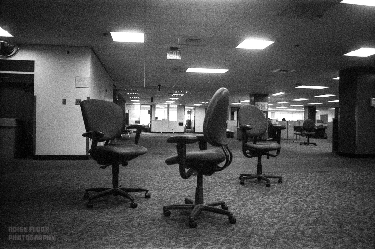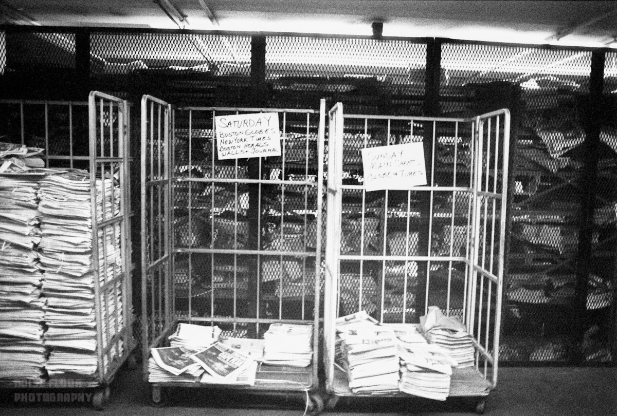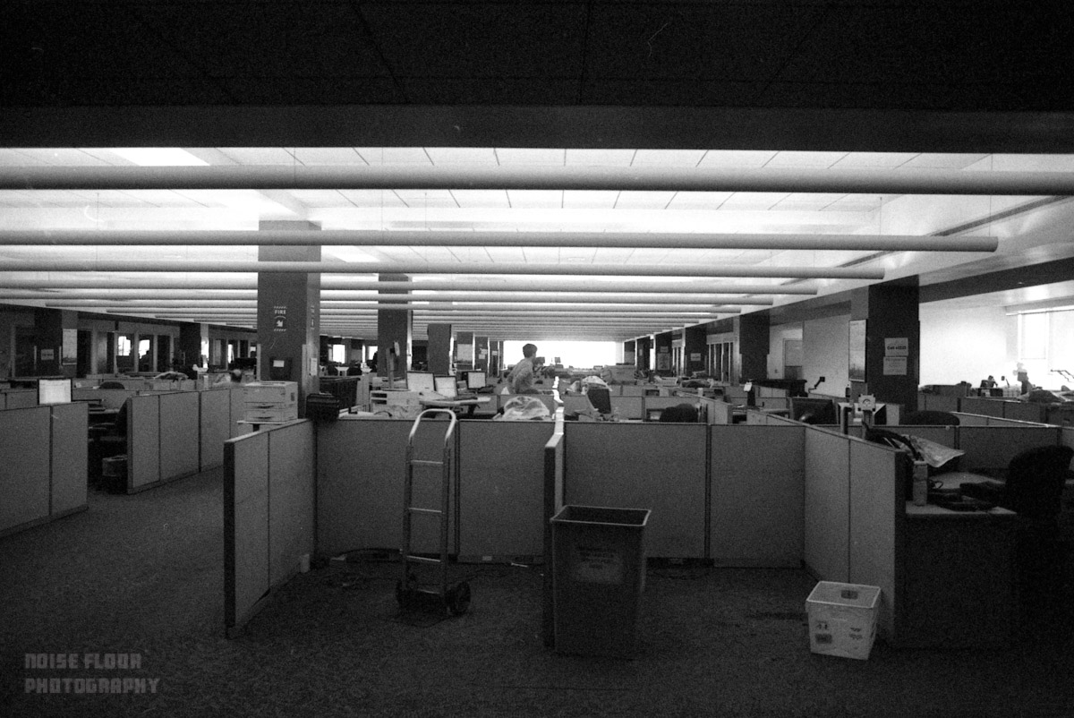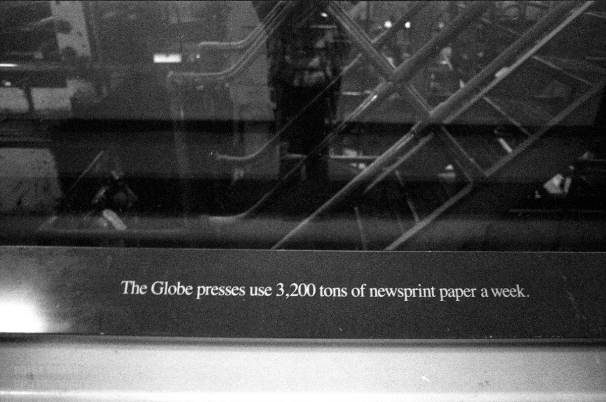 As you may have heard, my employer The Boston Globe recently relocated from its longtime home at 135 Morrissey Boulevard in Dorchester to a shiny new headquarters on State Street downtown. On our final days at the old building, armed with rolls of expired Tri-X film salvaged from a staff photographer’s locker, a colleague and I ventured around its many mysterious corridors to capture some some sense of the end of the era.