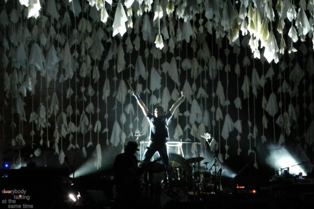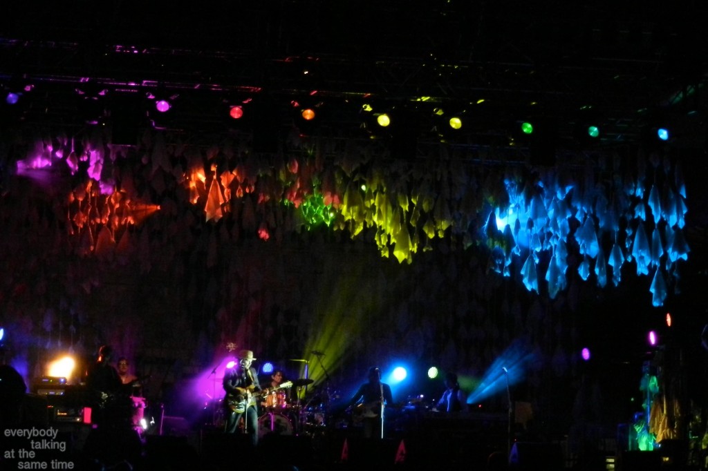 Next up was Sam Beam’s Iron & Wine on the Quad Stage. For years Beam performed and recorded mostly solo as Iron & Wine, but as his sonic palette has expanded from record to record, he’s taken to touring with a full five piece backing band. Purists and worshipers of The Creek Drank the Cradle didn’t seem overjoyed at the prospect of Iron & Wine as an actual band, but for the most part Beam and company pulled it off. A few stripped down cuts from Our Endless Numbered Days opened the set, which continued with a focus on more orchestrated songs from last year’s Kiss Each Other Clean and 2007’s The Shepherd’s Dog. With six people on stage, the arrangements did border on overstuffed at times. The band successfully reeled themselves in though, and employed restraint where it was needed most. The set was at its best when Beam’s voice and lyrics were at the forefront, where they belong.