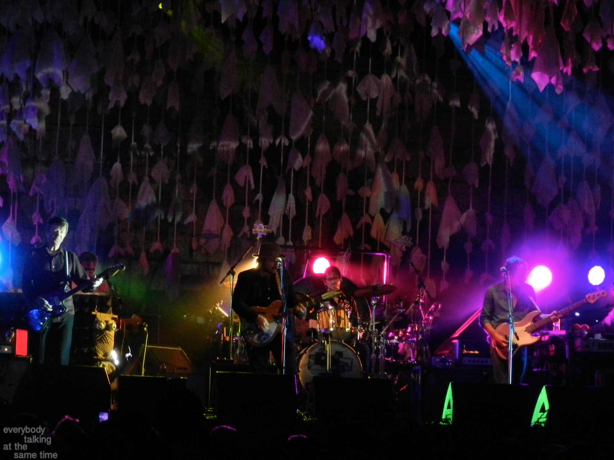 Friday evening’s show with Wilco, Blitzen Trapper and Megafaun wasn’t technically a part of the festival (it was billed a ‘Folk Friday’ instead), but the bill fit squarely within the fest’s progressive outlook on folk in modern music. Wilco are hardly a ‘folk band,’ but the fingerprints of genre pioneers like Woody Guthrie are all over the group’s catalog. Jeff Tweedy and company would pay tribute to Guthrie (whose hundredth birthday would have been this year) by opening their set with a cover of “Christ For President,” and returning to his words for multiple songs from their Mermaid Avenue records (which put previously unheard Guthrie lyrics to music in collaboration with Billy Bragg). Wilco being Wilco though, this wasn’t a show rooted wholly in nostalgia. The night also saw no shortage of adventurous material spanning their career.