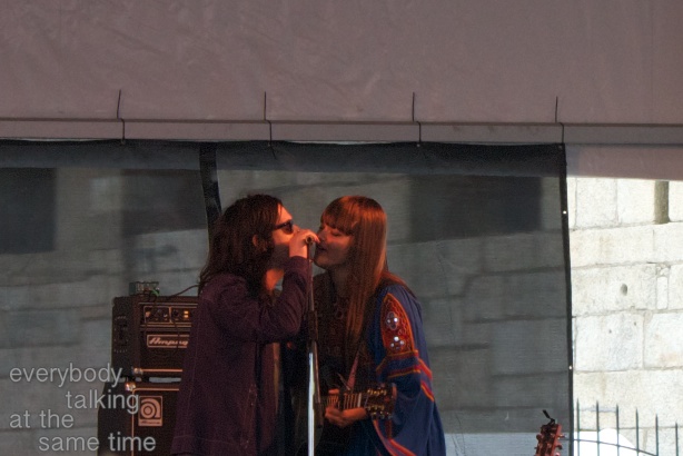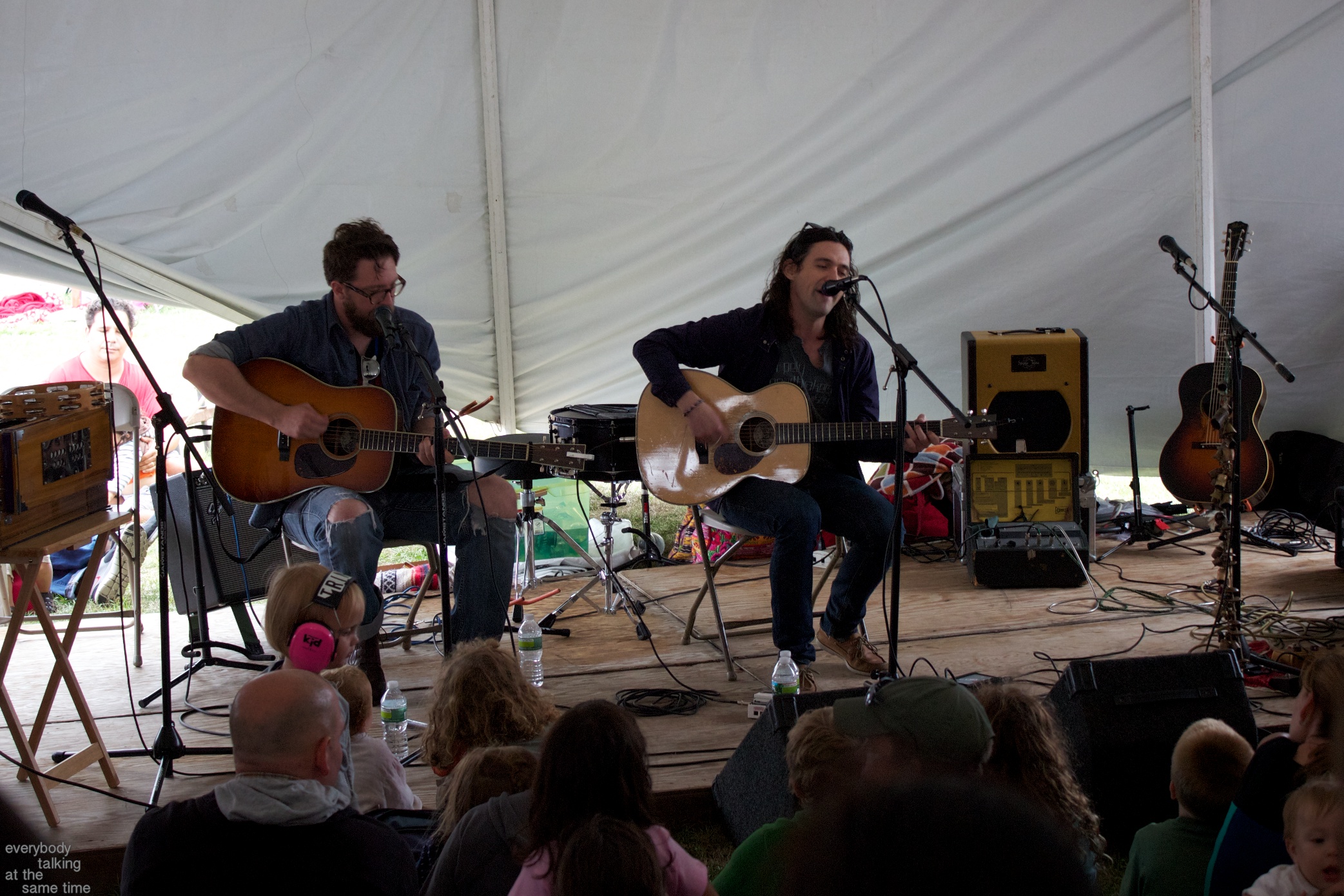 Saturday got off to a late start for me (car issues, traffic, forgotten tickets, you name it), but I did arrive in time to check out Swedish duo First Aid Kit. Sisters Johanna and Klara Söderberg were joined by “a Swedish drummer from Sweden” (their words) for a set of earnest and gorgeously sung songs rooted in traditional country and folk. The two sing in close harmony with indescribably beautiful voices, accompanying themselves with keys and acoustic guitar. Their own songs shined, but they also made strong choices for covers in the form of Joan Baez’s “Diamonds and Rust” and Fever Ray’s “When I Grow Up.” Set-closer “King of the World” brought the first of the weekend’s many unexpected Conor Oberst appearances for the final verse.