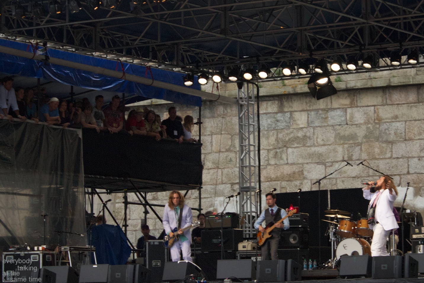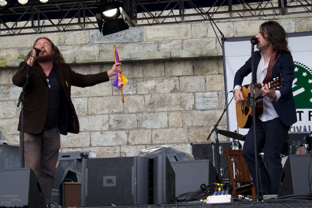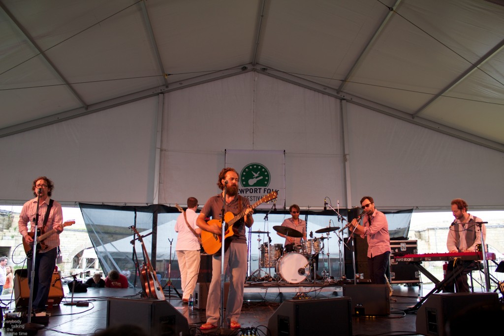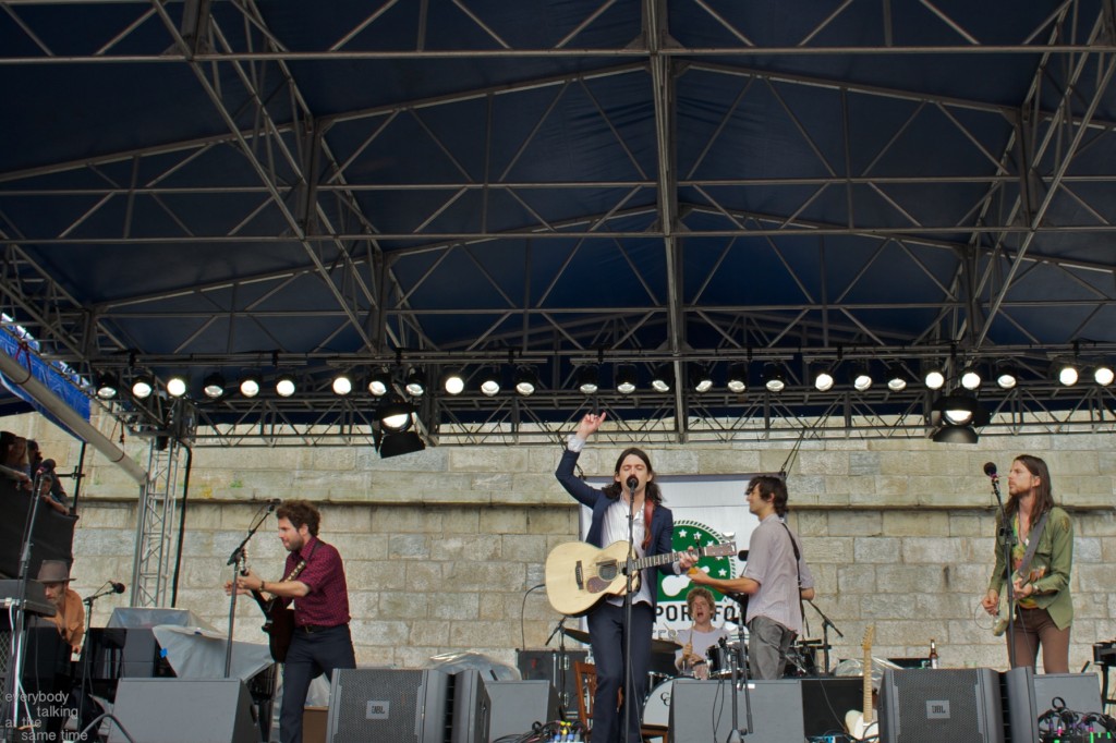 Megafaun’s set was lost to me as a result of ungodly Newport traffic, but I arrived in time to see most of second opener Blitzen Trapper. The quintet offered up heavily folk and country influenced songs with a classic rock bent. They sounded gentle and unassuming one minute and ripped into dueling electric guitar solos the next. The band seemed to suffer sound issues as a result of the rain (which had just subsided as they took the stage), and frontman Eric Earley looked frustrated. They powered through though, peppering a short set with some of their best-loved songs (“Black River Killer” and “Furr” back-to-back were true crowd-pleasers).