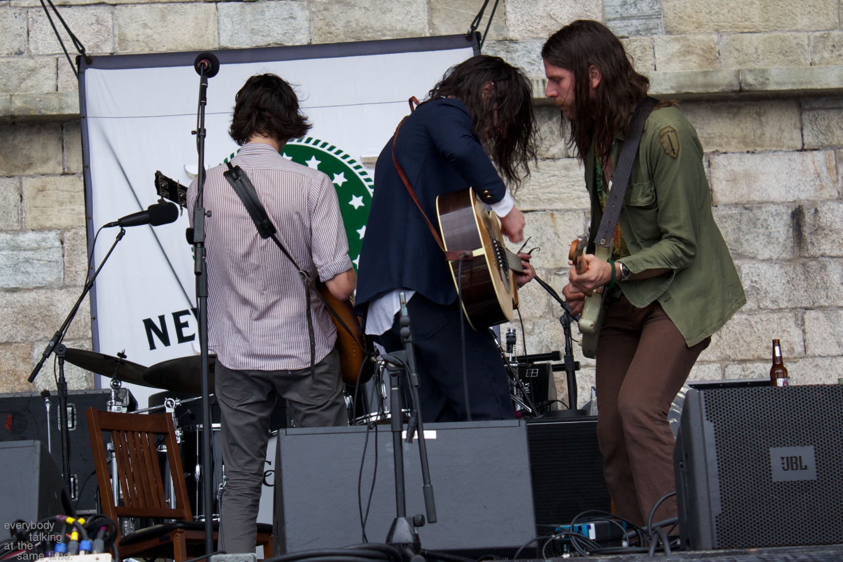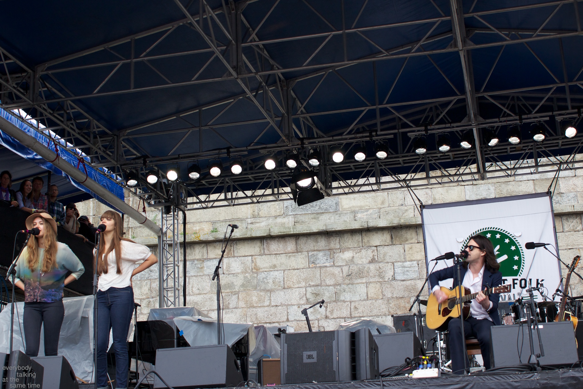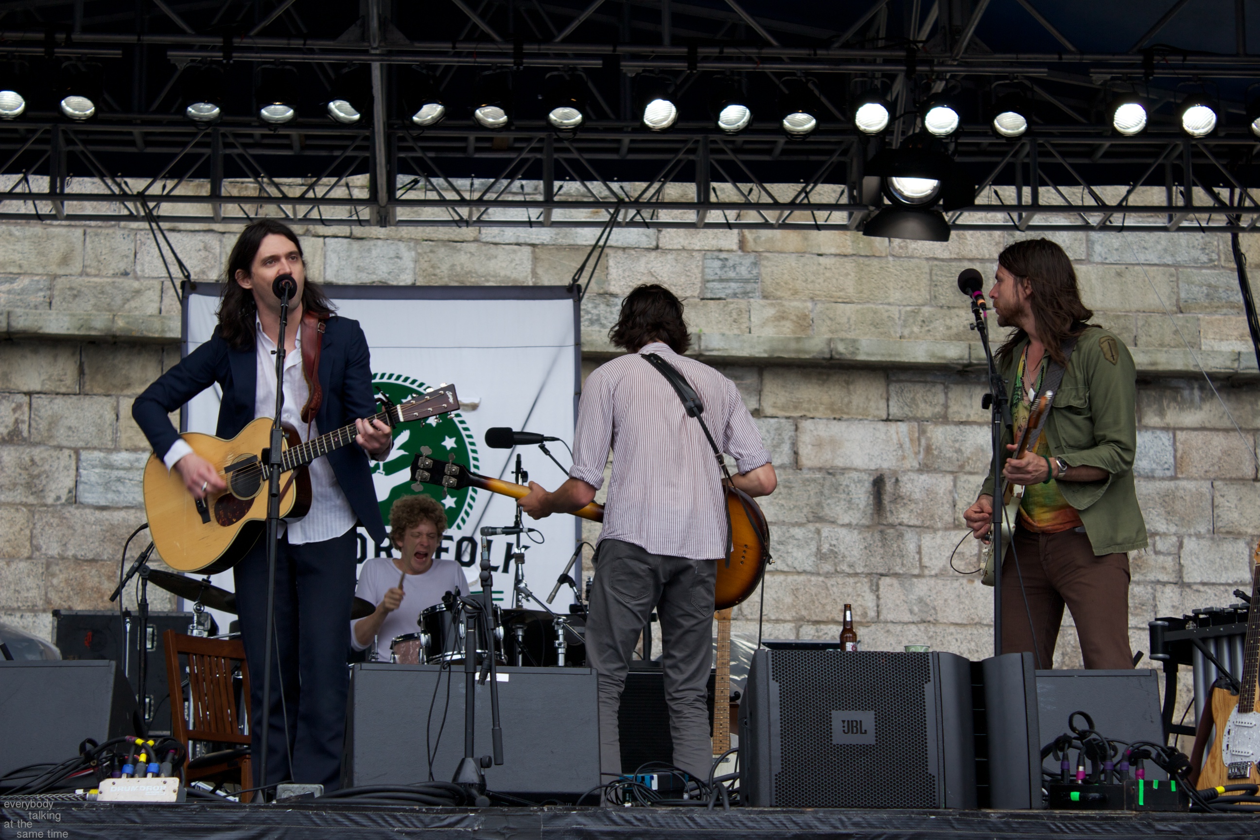 Megafaun’s set was lost to me as a result of ungodly Newport traffic, but I arrived in time to see most of second opener Blitzen Trapper. The quintet offered up heavily folk and country influenced songs with a classic rock bent. They sounded gentle and unassuming one minute and ripped into dueling electric guitar solos the next. The band seemed to suffer sound issues as a result of the rain (which had just subsided as they took the stage), and frontman Eric Earley looked frustrated. They powered through though, peppering a short set with some of their best-loved songs (“Black River Killer” and “Furr” back-to-back were true crowd-pleasers).